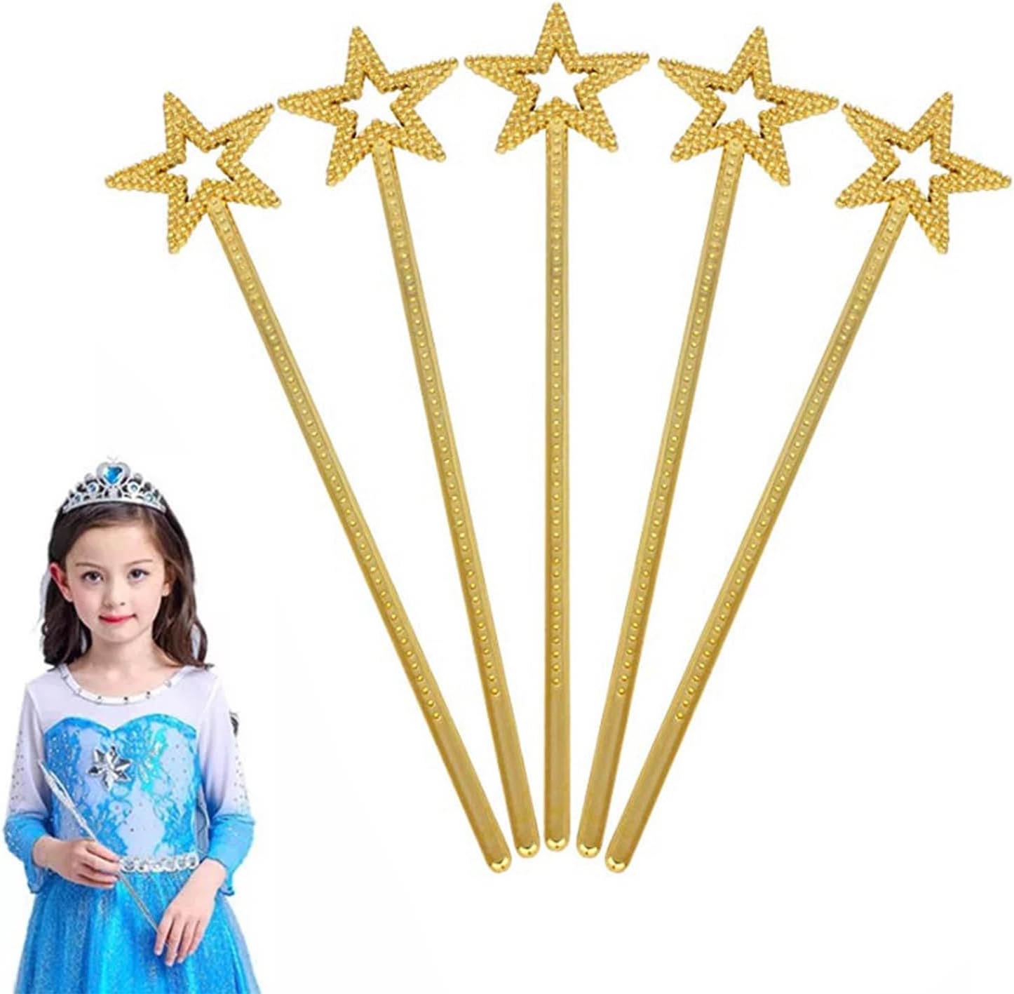 Principessa a prova di bambino: realizzata in resistente materiale ABS, presenta superfici lisce che sono delicate sulla pelle del tuo bambino. Aspettatevi ore di gioco sicuro e fantasioso. Meraviglia scintillante: con la sua lucentezza scintillante e le scanalature intricate, questa bacchetta magica aggiungerà un ulteriore livello di incanto al tea party o alla festa di compleanno della tua piccola principessa. È un accessorio essenziale per qualsiasi tema fiabesco e ti trasporta in un mondo magico pieno di meraviglie. Aggiungi all'incanto: la nostra principessa principessa presenta un effetto glitter pieno di stelle che tremolano quando la luce colpisce il design a stella luminosa. Ciò aggiunge un'ulteriore dimensione di fascino al tempo di gioco del tuo bambino e rende le sue avventure fantasiose ancora più emozionanti e memorabili. Fascino reale: aumenta il fascino dei travestimenti e dei giochi di ruolo con il nostro costume da principessa. Il suo design raffinato offre un'eleganza accattivante ed è ideale per piccole principesse, ballerine e feste in maschera. Fai sentire il tuo bambino come un re e lascia correre la sua immaginazione con un vestito splendidamente realizzato che lo farà risaltare e brillare. REGALO UNICO: questo abito da principessa è il regalo perfetto per ragazze, neonati, bambini, sorelle e figlie a cui piace fingere di giocare e lasciare correre la loro immaginazione.