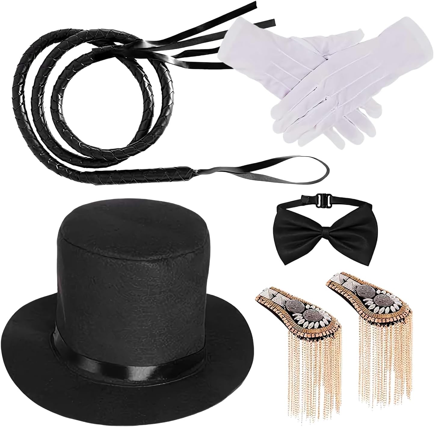 Descrizione prodotto Trasformatevi in un affascinante del circo con la nostra selezione curata di . Questo set comprende grandi come spalline, una frusta, guanti, un cappello a cilindro e un papillon, adatti sia agli uomini che alle donne. Che si tratti di cosplay o eventi a tema, questi oggetti portano creatività e fascino alle feste e alle esibizioni. per costumi da circo perfetti per ogni occasione speciale. Specifiche: Materiale: tessuto non tessuto, feltro, pelle, metallo Dimensione del cappello: circa 32x7,5 cm/12.6x2,95 pollici Dimensioni di epaulette: circa 19x7,1 cm/7.48x2,8 pollici Dimensione del papilla: circa 10x5cm/3.94x1,97 pollici Dimensione del guanto: circa 22,8 cm/8,98 pollici Peso: circa 300 g Elenco dei prodotti: 1 * cappello a cilindro 1 coppia * Epaulette di spalla 1 * papillon 1 coppia* guanti 1 * Whip Nota: A causa e diverse impostazioni di illuminazione e schermo, il colore 'oggetto può essere leggermente diverso dall'immagine. A causa e diverse misurazioni manuali, consentire una differenza di 1-2 cm di dimensioni. Avviso di sicurezza Non applicabile