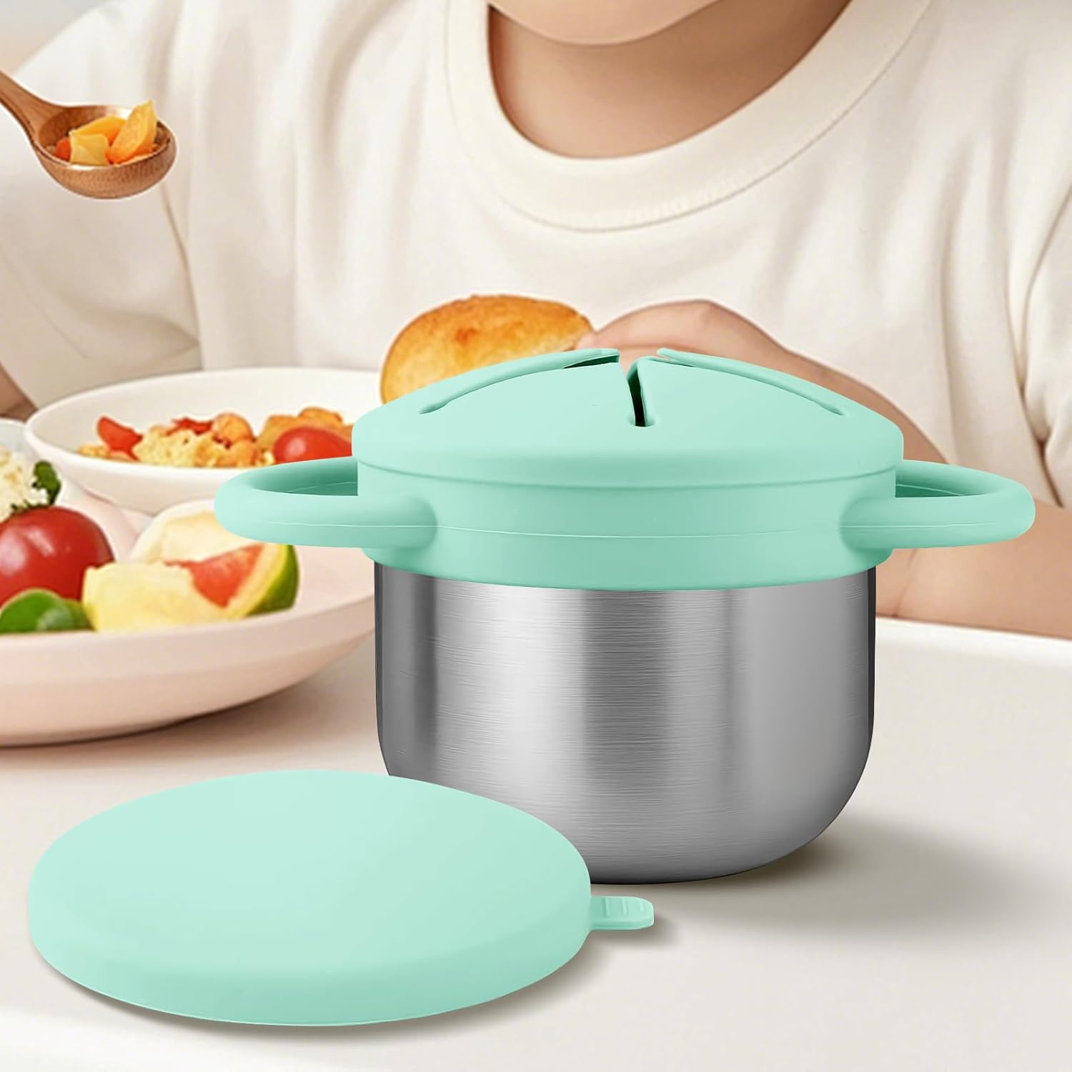 Regalo Ricercato:Portasnack bimbi studiato per esprimere cura, scelta deliziosa per bambini e bambine in occasioni come festività, Natale e ricorrenze annuali. Utilizzo versatile:Facile smontaggio per utilizzo flessibile in asilo , viaggi o spazi domestici, sviluppa naturalmente le capacità motorie e la coordinazione durante i momenti di merenda per bambini piccoli. Materiali robusti: Costruito con la combinazione di acciaio inossidabile e silicone flessibile, questo contenitore snack bambini è progettato per resistere agli urti e preservare l'aspetto, grazie a una robusta struttura a doppio strato che ne migliora la longevità. Facile da Pulire: Adatto a lavastoviglie, semplifica le pulizie domestiche, resiste all'accumulo di residui alimentari e fa risparmiare , ideale per uso frequente di contenitori snack infanzia Sicurezza a Tavola: Aiuta a costruire fiducia durante i pasti prevenendo fuoriuscite, mantenendo la freschezza con chiusura ermetica e organizzando gli snack grazie a divisori regolabili