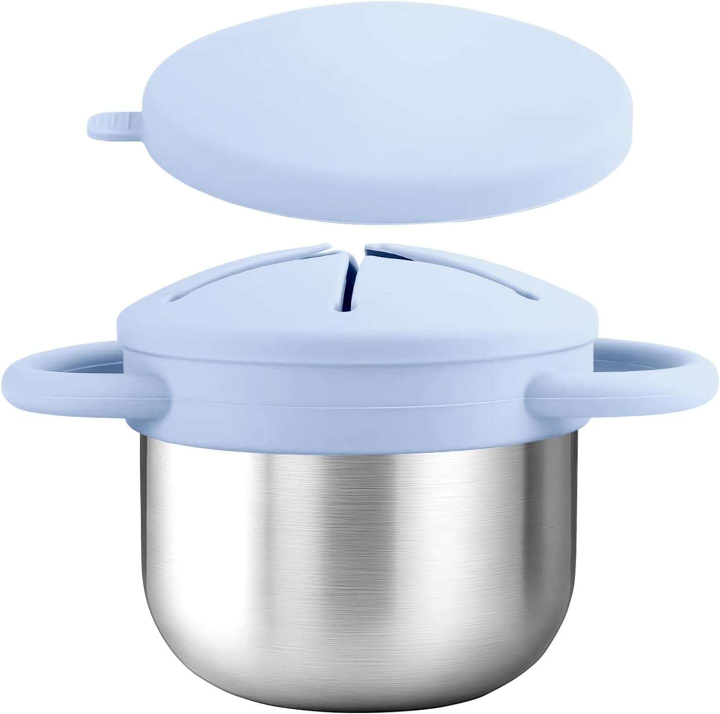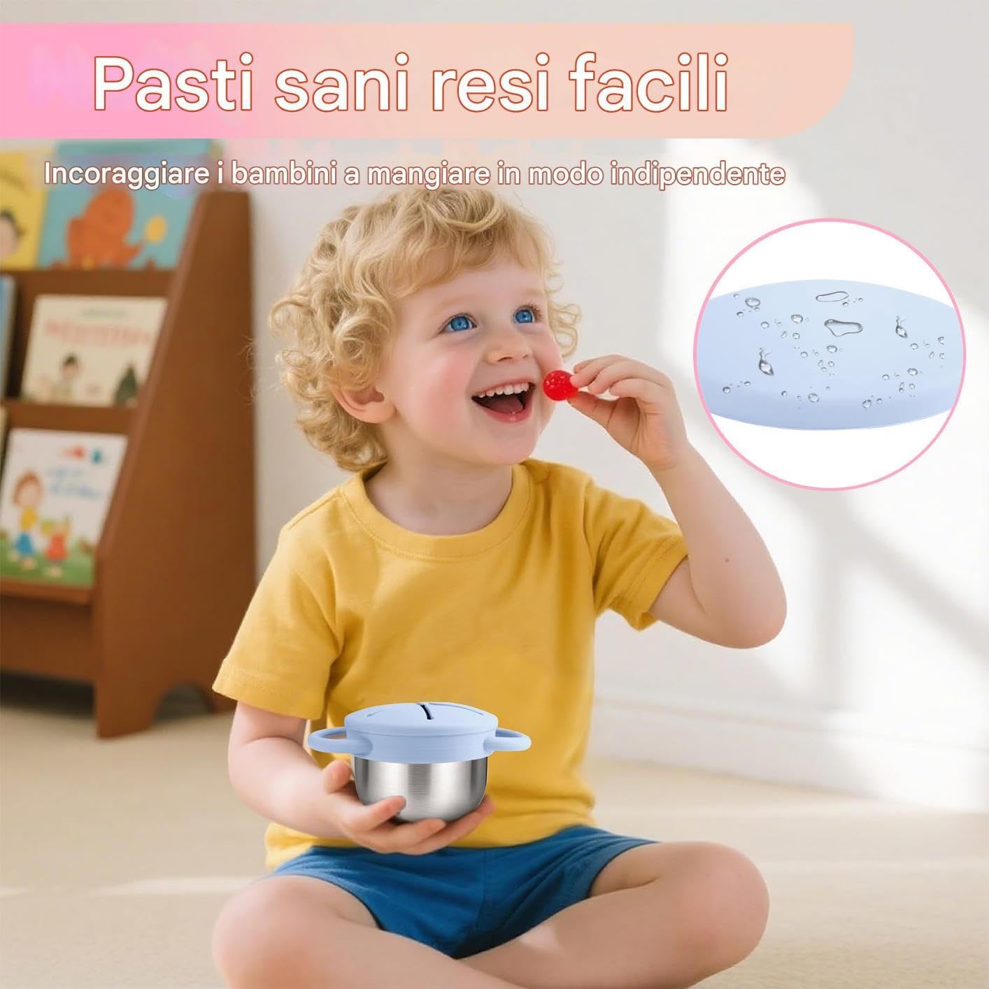 Regalo Divertente:Condividi affetto con questo portasnack bimbi, regalo per infanzia in compleanni, feste, Natale o festività di fine anno. Un pensiero gioioso che scalda il cuore. Utilizzo versatile:Facile smontaggio per utilizzo flessibile in asilo , viaggi o spazi domestici, sviluppa naturalmente le capacità motorie e la coordinazione durante i momenti di merenda per bambini piccoli. Durabilità acciaio: Grazie alla miscela di acciaio inossidabile e silicone flessibile supportata da una struttura a doppio strato, questo contenitore snack per bambini offre un materiale robusto che mantiene la lucentezza dopo frequenti utilizzi e resiste agli urti quotidiani. Facile da Pulire: Adatto a lavastoviglie, semplifica le pulizie domestiche, resiste all'accumulo di residui alimentari e fa risparmiare , ideale per uso frequente di contenitori snack infanzia Praticità Quotidiana: Progettato per esplorazione alimentare sicura, preserva l'integrità degli snack mediante tenuta stagna e divisori adattabili per un uso versatile
