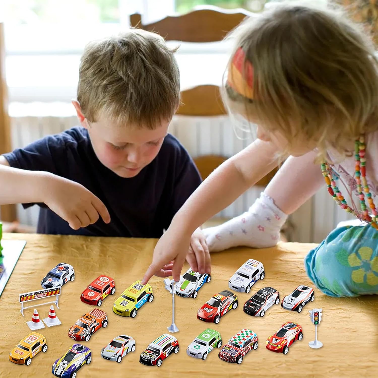 Corse coinvolgenti: testimonia lo straordinario realismo delle nostre auto da corsa con una simulazione squisita. Colori vivaci e dettagli intricati ti porteranno in pista, rendendoli l'aggiunta perfetta alla tua collezione. Costruzione robusta: realizzato in lega di alta qualità, questo trattore offre protezione contro collisioni e usura. Il suo design robusto garantisce divertimento e prestazioni superiori con guasti minimi. Maggiore comodità: questo pacchetto di macchinine include un'elegante scatola portaoggetti a botte come regalo aggiuntivo, garantendo organizzazione e portabilità senza problemi. Ottimo regalo: se stai cercando un regalo di compleanno, un regalo di Natale, un regalo per bambini o un regalo di Capodanno per i tuoi bambini, puoi scegliere le auto da tiro. Alimentato dall'attrito: preparati per l'esperienza di corsa definitiva con la nostra auto completa. Costruite per velocità con pullback ad alte prestazioni, queste auto da corsa vantano velocità fulminee senza la necessità di batterie o cavi. Tirati indietro e preparati a correre!