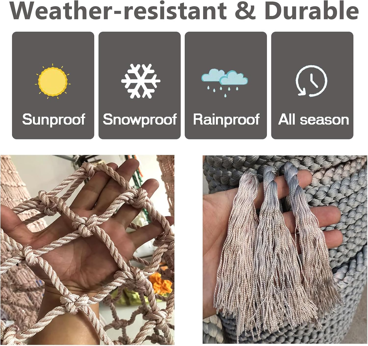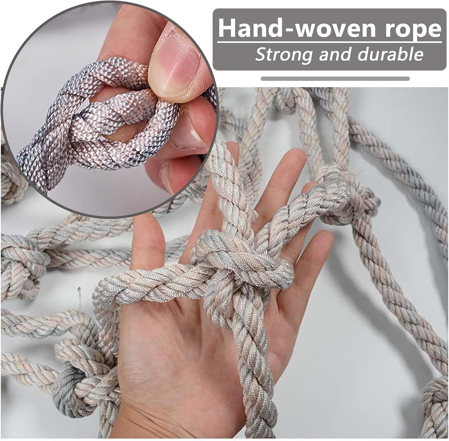 Dimensioni della rete della corda: la nostra resistente corda in poliammide ha un diametro di 16 mm e una maglia di 15x15 cm. Disponibile in vari spessori e lunghezze, perfetta per le tue esigenze. Le opzioni di personalizzazione includono lunghezza x larghezza, diametro della maglia e diametro della corda, garantendoti la soluzione ideale per il tuo progetto. Ideale per attività all'aperto e applicazioni di sicurezza. Rete di protezione di sicurezza: realizzata in resistente corda di poliammide, questa rete versatile è progettata per integrarsi perfettamente in qualsiasi ambiente, offrendo al contempo una protezione ottimale. La sua struttura robusta garantisce affidabilità in diverse applicazioni, rendendola ideale per attività all'aperto, parchi giochi e altro ancora. Migliora la sicurezza senza compromettere l'estetica con la nostra soluzione di rete adattabile. Vi presentiamo la nostra versatile rete da arrampicata per parchi giochi, un'aggiunta unica alle vostre attrezzature da gioco all'aperto. Progettata con materiali resistenti, presenta un accattivante cambio di colore che evolve dal rosa o grigio al grigio scuro sotto la luce del sole. Perfetta per arricchire le avventure di arrampicata dei bambini, questa rete promuove il gioco attivo garantendo sicurezza e divertimento in qualsiasi cortile o parco giochi. Decorazione portaoggetti: i colori naturali e la raffinata tessitura della rete di sicurezza da arrampicata mostrano una bellezza semplice che si adatta a vari stili di ambiente. Puoi appenderla alla parete o al soffitto per riporre oggetti vari, aggiungendo anche un elemento personalizzato alla stanza. Attenzione: una caratteristica importante delle reti da arrampicata per parchi giochi è il cambio di colore. Il colore della rete di corda cambierà con il tempo in cui è esposta alla luce solare. Quando ricevi la rete di corda, è rosa o grigia e alla fine diventerà grigio scuro quando esposta alla luce solare