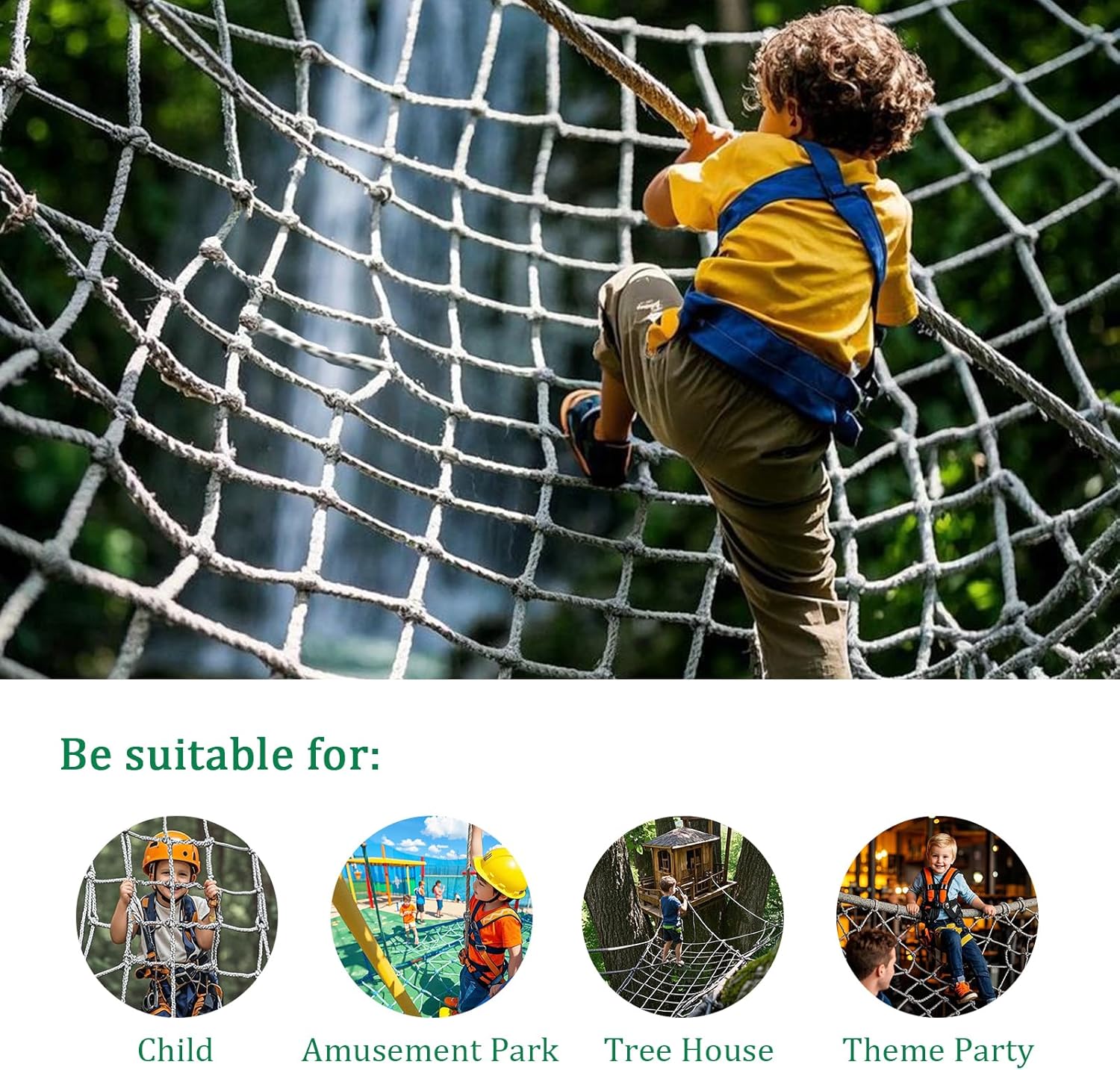 Resistente a tutte le condizioni atmosferiche: realizzato con nodi intrecciati a mano in morbida poliammide, questo prodotto garantisce una distribuzione uniforme delle sollecitazioni e supporta oltre 360 kg. L'elevata resistenza alla trazione e l'eccellente resistenza agli agenti atmosferici lo rendono ideale per l'uso esterno, garantendo affidabilità e longevità in diverse condizioni. Perfetto per chi cerca una soluzione robusta e versatile. Rete di corda multiuso: ideale per le attività di arrampicata dei bambini, tra cui altalene, casette da gioco all'aperto, set da gioco, attrezzature da gioco, palestre nella giungla, case sugli alberi, ponti di corda e parchi giochi in giardino. Inoltre, può essere utilizzata come amaca o rete di sicurezza per balconi, ringhiere e corrimano delle scale, aumentando il divertimento e la sicurezza negli spazi esterni. Dimensioni personalizzate: disponibile in lunghezze da 1 a 10 metri, il nostro prodotto consente di personalizzare le dimensioni per adattarsi al tuo spazio. Grazie alla possibilità di personalizzare lunghezza, larghezza, diametro della maglia e diametro della corda, si adatta perfettamente a diverse esigenze, garantendo funzionalità e versatilità ottimali per il tuo progetto. Perfetto per valorizzare qualsiasi ambiente senza rinunciare alla qualità. Portatile e leggero: la rete da arrampicata è leggera e facile da spostare, il che la rende perfetta per le attività all'aperto e può essere arrotolata in una borsa portaoggetti per il trasporto o lo stoccaggio Dimensioni personalizzate: la lunghezza e la larghezza sono disponibili da 3,3 a 33 piedi e la lunghezza*larghezza, il diametro della maglia e il diametro della corda possono essere personalizzati per adattarsi perfettamente a diverse esigenze di spazio