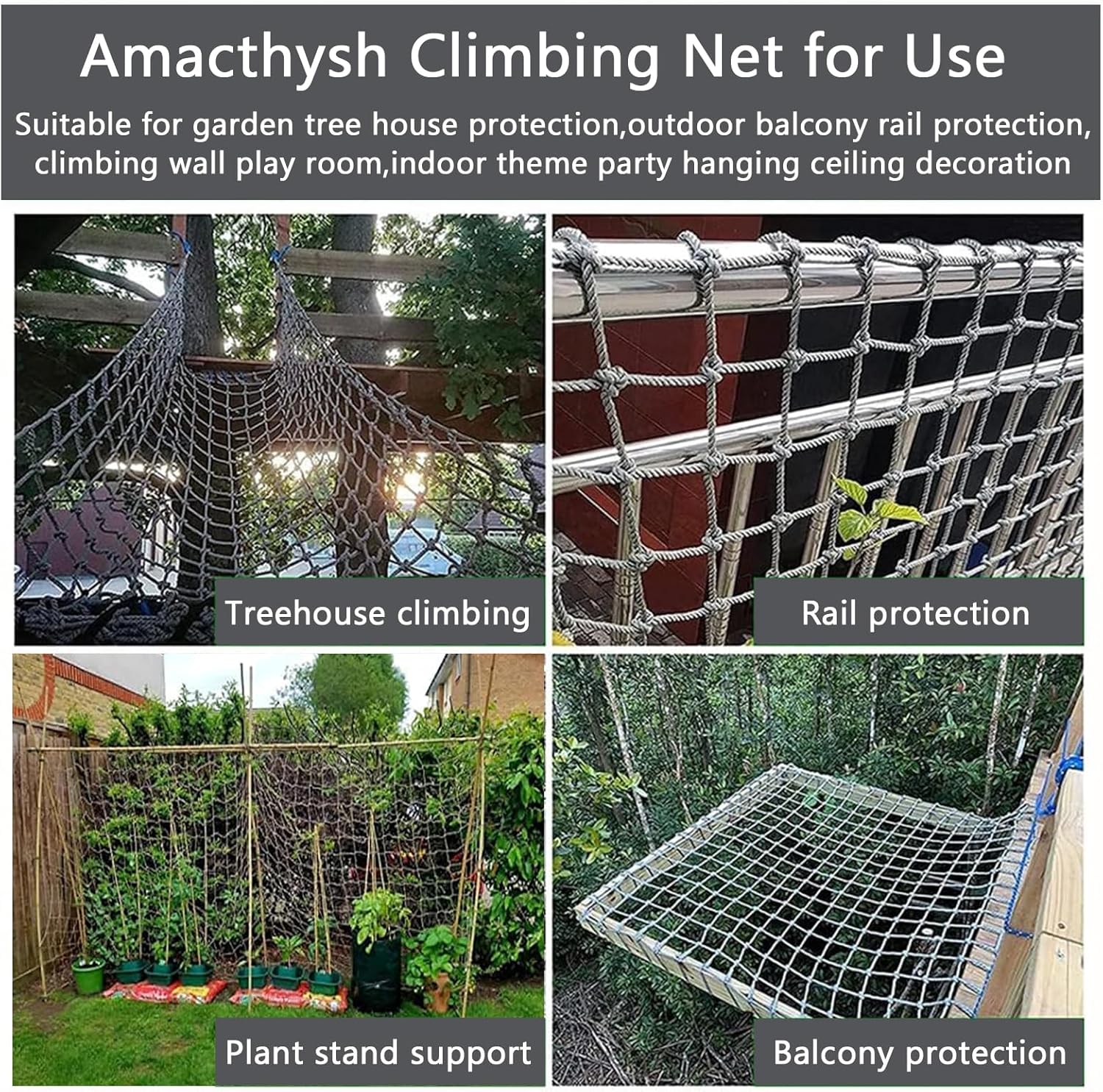 Dimensioni personalizzate: disponibili in lunghezze da 5 a 10 metri e larghezze di 5 metri. Personalizza lunghezza, larghezza, diametro della maglia e diametro della fune in base alle tue specifiche esigenze di spazio. Ideale per una varietà di applicazioni, questo prodotto versatile garantisce una perfetta aderenza ai requisiti del tuo progetto. Migliora la tua configurazione con il nostro design adattabile che soddisfa le tue specifiche esigenze. Resistente a tutte le condizioni atmosferiche: realizzato con nodi intrecciati a mano in poliammide di alta qualità, questo prodotto offre un'eccellente capacità di carico di oltre 360 kg. L'elevata resistenza alla trazione garantisce una distribuzione uniforme delle sollecitazioni, mentre l'eccellente resistenza agli agenti atmosferici lo rende adatto all'uso esterno a lungo termine. Ideale per diverse applicazioni all'aperto, coniuga resistenza e funzionalità senza sforzo. Portatile e leggera: questa rete da arrampicata è progettata per una facile mobilità, rendendola ideale per le attività all'aperto. La sua struttura leggera consente un trasporto senza sforzo e si arrotola comodamente in una borsa compatta per un trasporto e uno stoccaggio senza problemi. Perfetta per scalatori e amanti dell'avventura alla ricerca di una soluzione affidabile e pratica! Installazione in 5 minuti: la rete da arrampicata è facile da installare e può essere rapidamente assemblata con hardware e strumenti di base. Ad esempio, utilizzare corde o ganci per fissare la rete da arrampicata all'attrezzatura. Puoi gestirla anche se non hai competenze di fai da te. Portatile e leggero: la rete da carico per arrampicata è leggera e facile da spostare, il che la rende perfetta per le attività all'aperto e può essere arrotolata in una borsa portaoggetti per il trasporto o lo stoccaggio