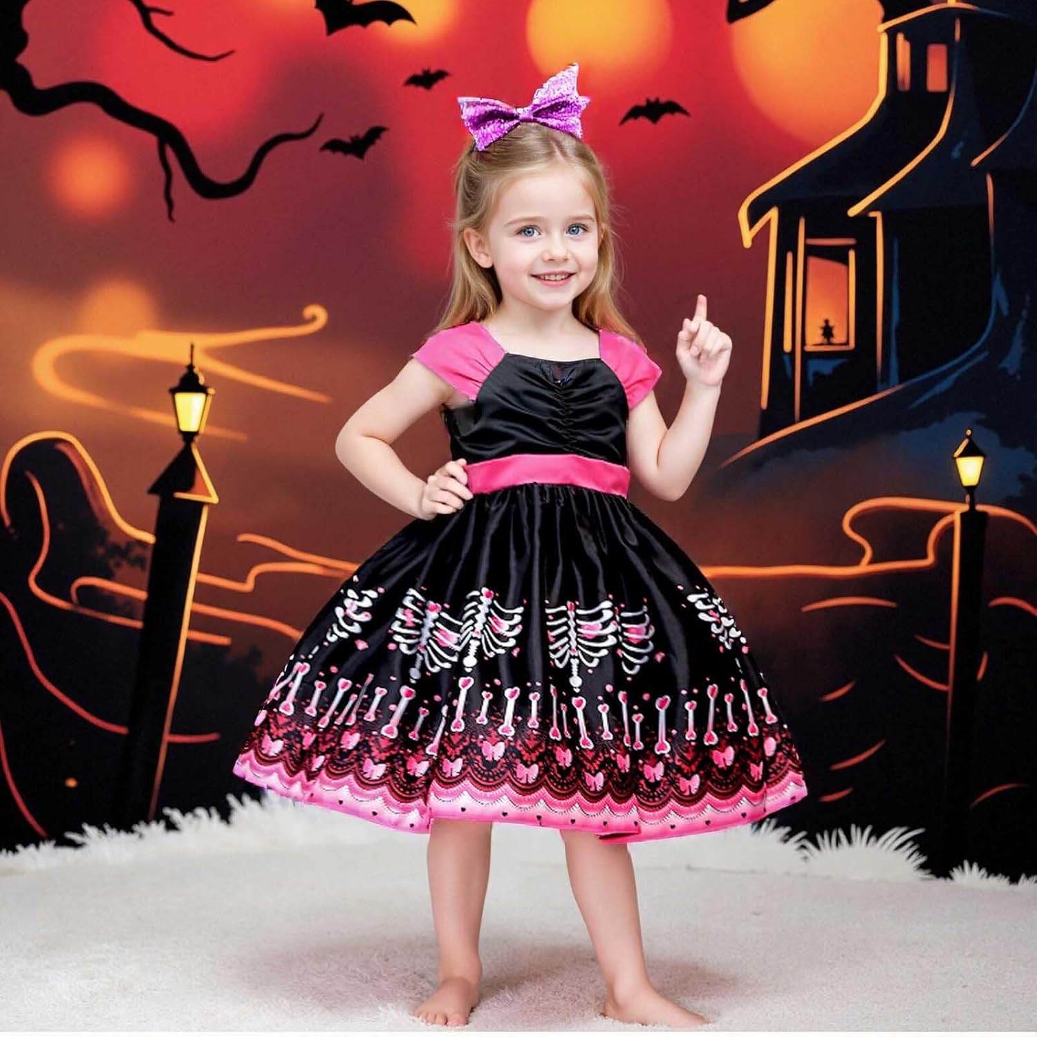 Generico Robe Tutu d'halloween pour Bébé Fille Costume da Vampiro Ragazza per Halloween Deguisement Bebe Vestito Carnevale Bambini Enfant Fillette Vestire Festa