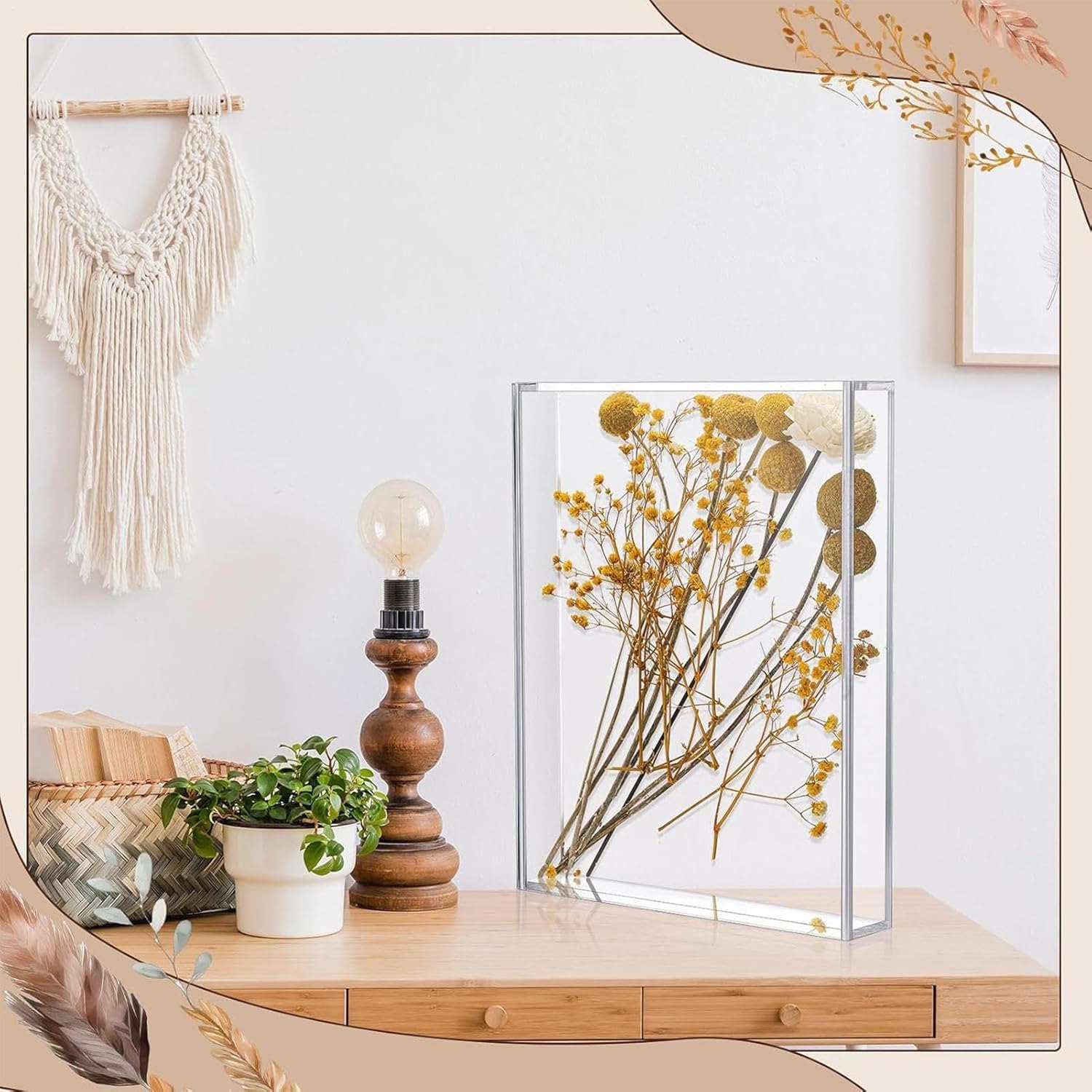 di preservazione: La combinazione di tenuta stagna antipolvere e coperchio ermetico amovibile assicura una barriera contro umidità, da UV, sbiadimento e indurimento, mantenendo intatta la qualità nel lungo periodo Pezzo d'Arte Funzionale: Fonde utilità ed eleganza decorativa per esporre fiori secchi, fotografie e campioni, preservando oggetti delicati con stile ricercato e un'estetica senza Organizzatore di ricordi ideale: Progettata per contenere miniature, biglietti e souvenir, questa scatola memory box offre soluzioni regolabili per matrimoni, lauree o occasioni festive, risultando stesso un regalo pensato e versatile per celebrazioni speciali e momenti indimenticabili Display perfettamente visibile: La composizione in acrilico puro assicura un'eccellente trasmittanza luminosa e una finitura vetrosa che offre ottima visibilità da ogni direzione, migliorando la praticità di esposizione senza compromettere sicurezza o estetica Sicurezza e Manutenzione Minimale: La struttura in acrilico infrangibile e durevole garantisce una protezione contro i , mantenendo la facilità d'uso e una costante convenienza di cura e conservazione senza sforzo nel