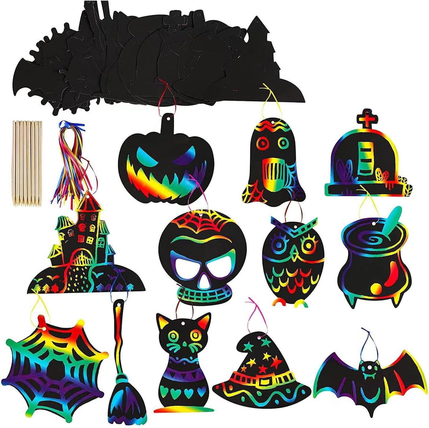 Educational Tool for Learning and Expression: Helps develop fine motor skills, hand-eye coordination, and color recognition while offering an exciting way to practice shapes, letters, or imaginative storytelling through pictures Interactive Book for Creative Play: Features pages of black-coated paper that reveal vibrant rainbow colors when scratched—encouraging kids to explore art and creativity through fun, hands-on drawing activities Includes Wooden for Safe and Easy Use: Comes with a smooth wooden pen designed for little hands to safely etch drawings, letters, or patterns without —perfect for young children at home or on the go Compact and Travel-Friendly for Any Setting: Lightweight and perfectly sized for backpacks or school bags, making it ideal for car rides, airplanes, classrooms, restaurants, or quiet time in study rooms and kindergartens Sturdy and Tear-Resistant Pages for Long Use: Made with thick, sturdy paper that stands up to repeated use, this drawing notebook keeps kids entertained and focused—an excellent alternative to screens and traditional coloring books