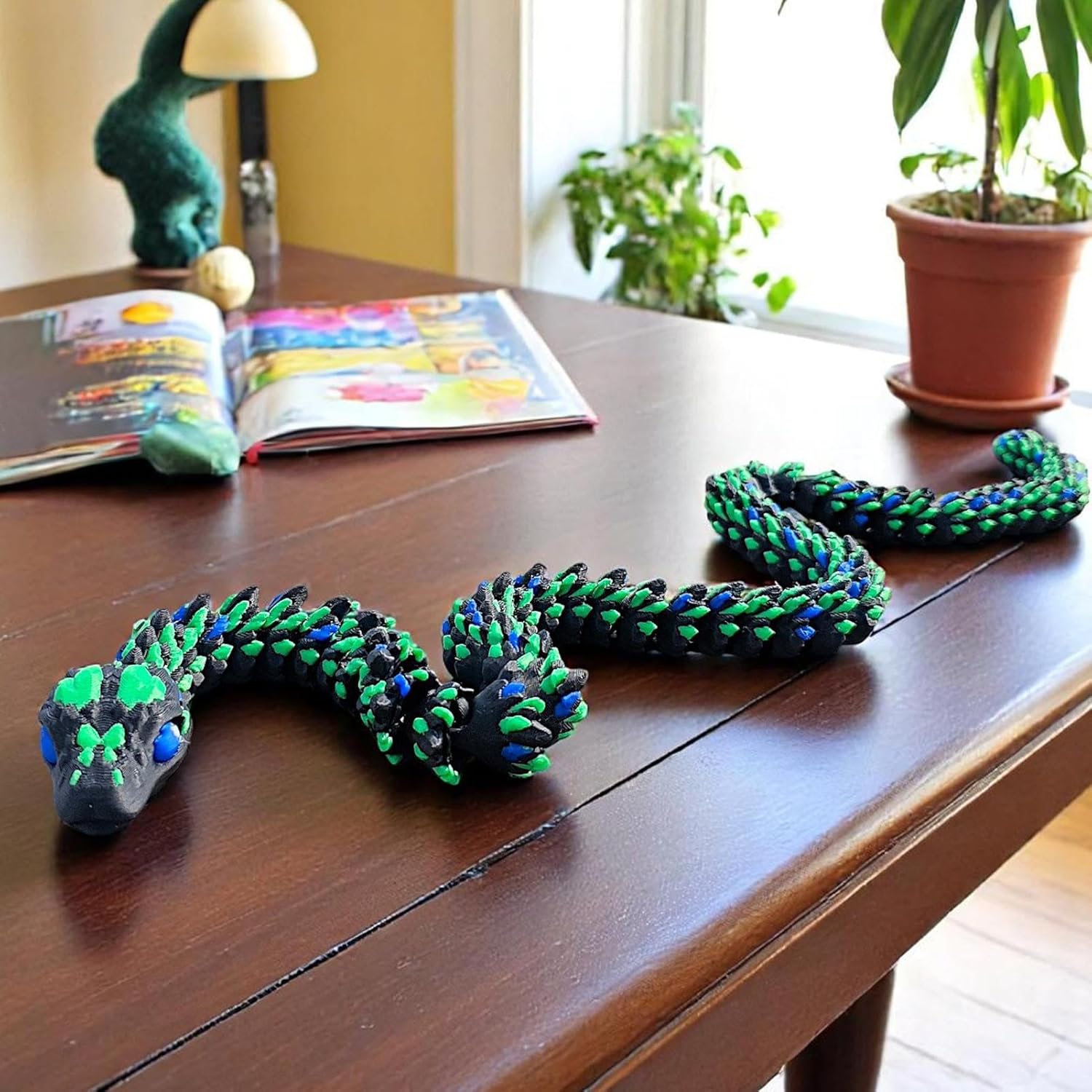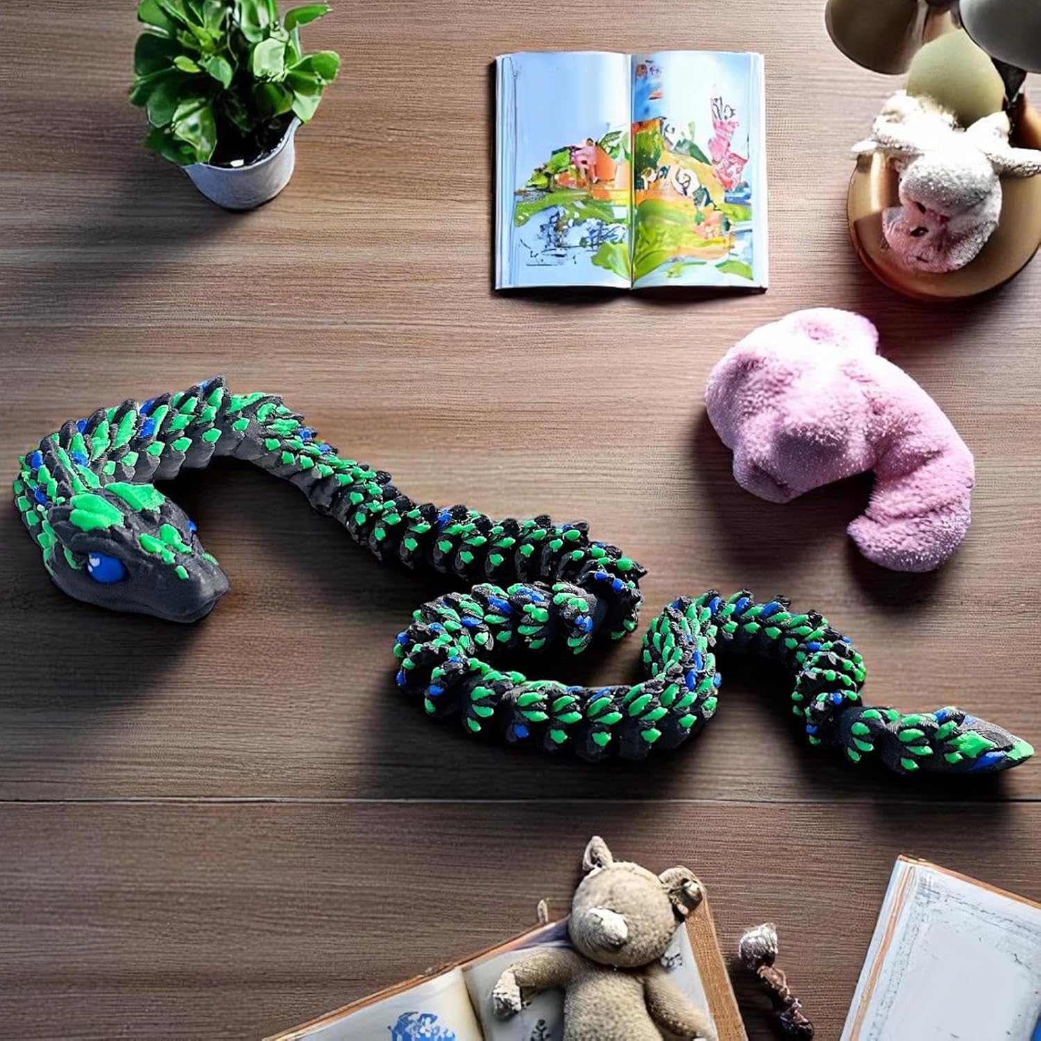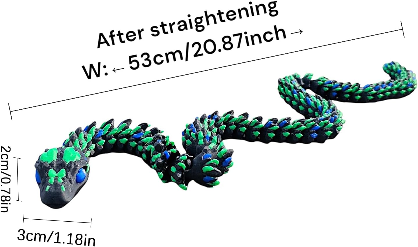 Corpo Segmentato Snodabile: Struttura modulare con giunti dinamici permette torsioni realistiche e pose personalizzate. Le scaglie ispirate a design cibernetico e le texture superficiali ad alta definizione un effetto rettiliano vivido, adatto sia per esposizione che per progetti artistici con elementi dinamici Modellazione Dettagliata: Scheletro interno stratificato e struttura flessibile bilanciata offrono 23 punti di articolazione. Realizza pose fluide e avvolgimenti complessi per display dinamici in ambienti domestici o professional Ottimizzazione spazio: Base snello migliora l'estetica ottimizzando l'organizzazione dello spazio, adatto per esposizioni su ripiani e mensol Feedback tattile avanzato:Tecnologia di risposta sensoriale ottimizzata garantisce un'esperienza e coinvolgente, ideale per sviluppare abilità motorie attraverso il gioco tematico serpente 3 Regalo Originale: Serpente 3D stampato che unisce creatività e divertimento, ideale per sorprendere bambini e adulti durante Halloween o Natale. Prodotto unico che stimola la fantasia e crea ricordi memorabili in occasioni festive, adatto a chi cerca regali fuori dall'ordinario con design accattivante e versatile