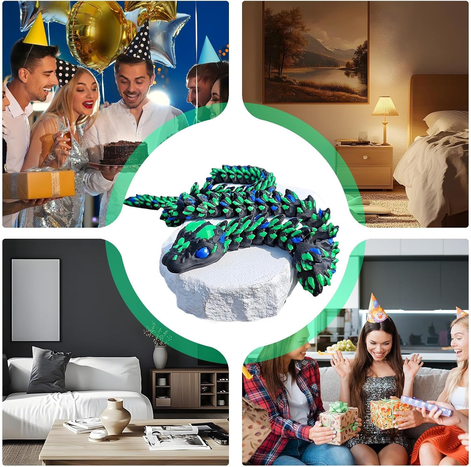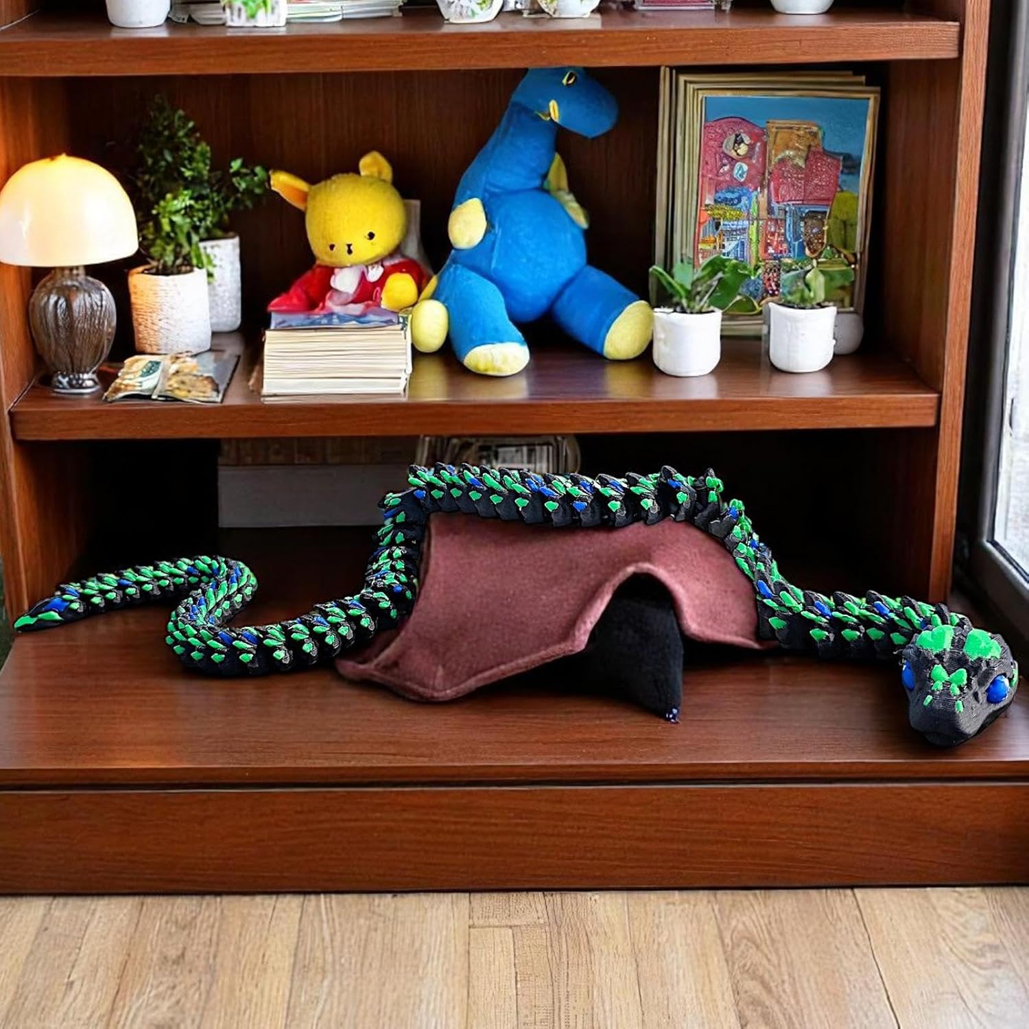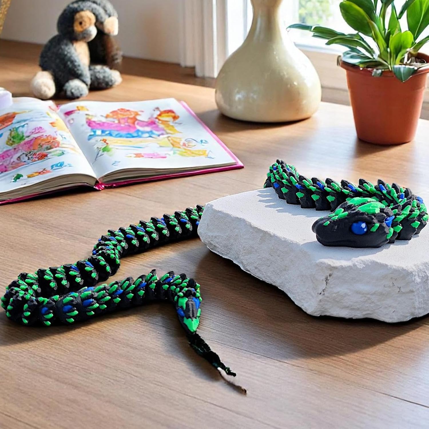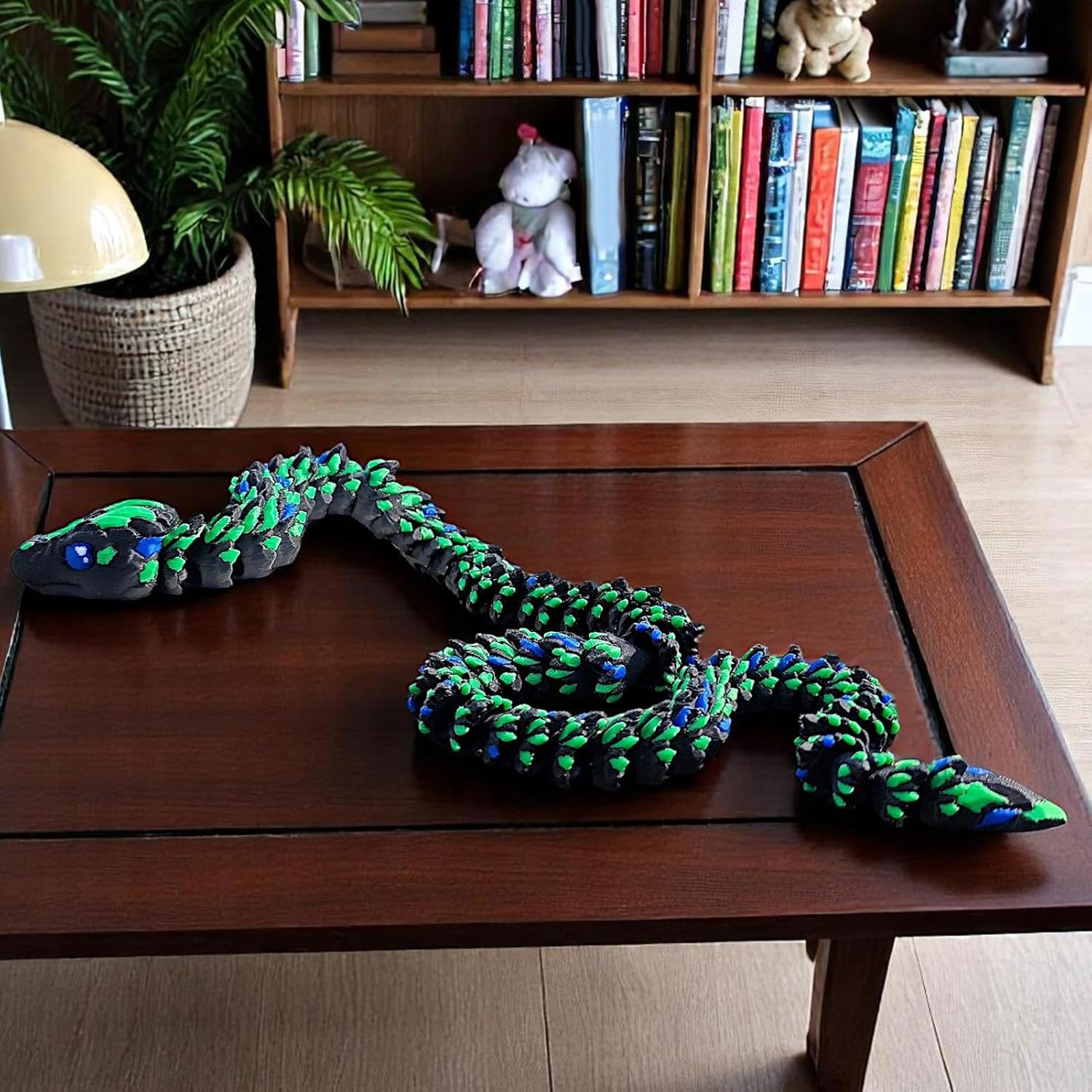 Corpo Segmentato Snodabile: Struttura modulare con giunti dinamici permette torsioni realistiche e pose personalizzate. Le scaglie ispirate a design cibernetico e le texture superficiali ad alta definizione un effetto rettiliano vivido, adatto sia per esposizione che per progetti artistici con elementi dinamici Modellazione Dettagliata: Scheletro interno stratificato e struttura flessibile bilanciata offrono 23 punti di articolazione. Realizza pose fluide e avvolgimenti complessi per display dinamici in ambienti domestici o professional Ottimizzazione spazio: Base snello migliora l'estetica ottimizzando l'organizzazione dello spazio, adatto per esposizioni su ripiani e mensol Feedback tattile avanzato:Tecnologia di risposta sensoriale ottimizzata garantisce un'esperienza e coinvolgente, ideale per sviluppare abilità motorie attraverso il gioco tematico serpente 3 Regalo Originale: Serpente 3D stampato che unisce creatività e divertimento, ideale per sorprendere bambini e adulti durante Halloween o Natale. Prodotto unico che stimola la fantasia e crea ricordi memorabili in occasioni festive, adatto a chi cerca regali fuori dall'ordinario con design accattivante e versatile