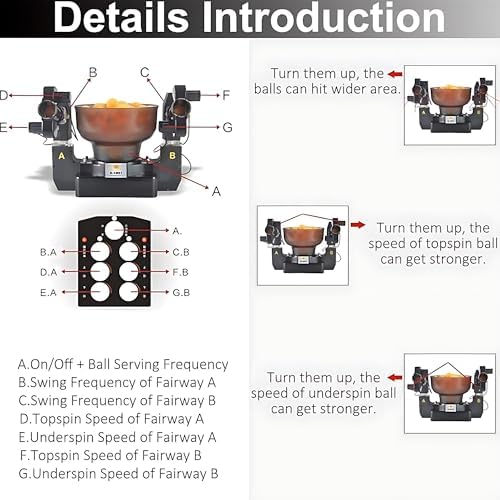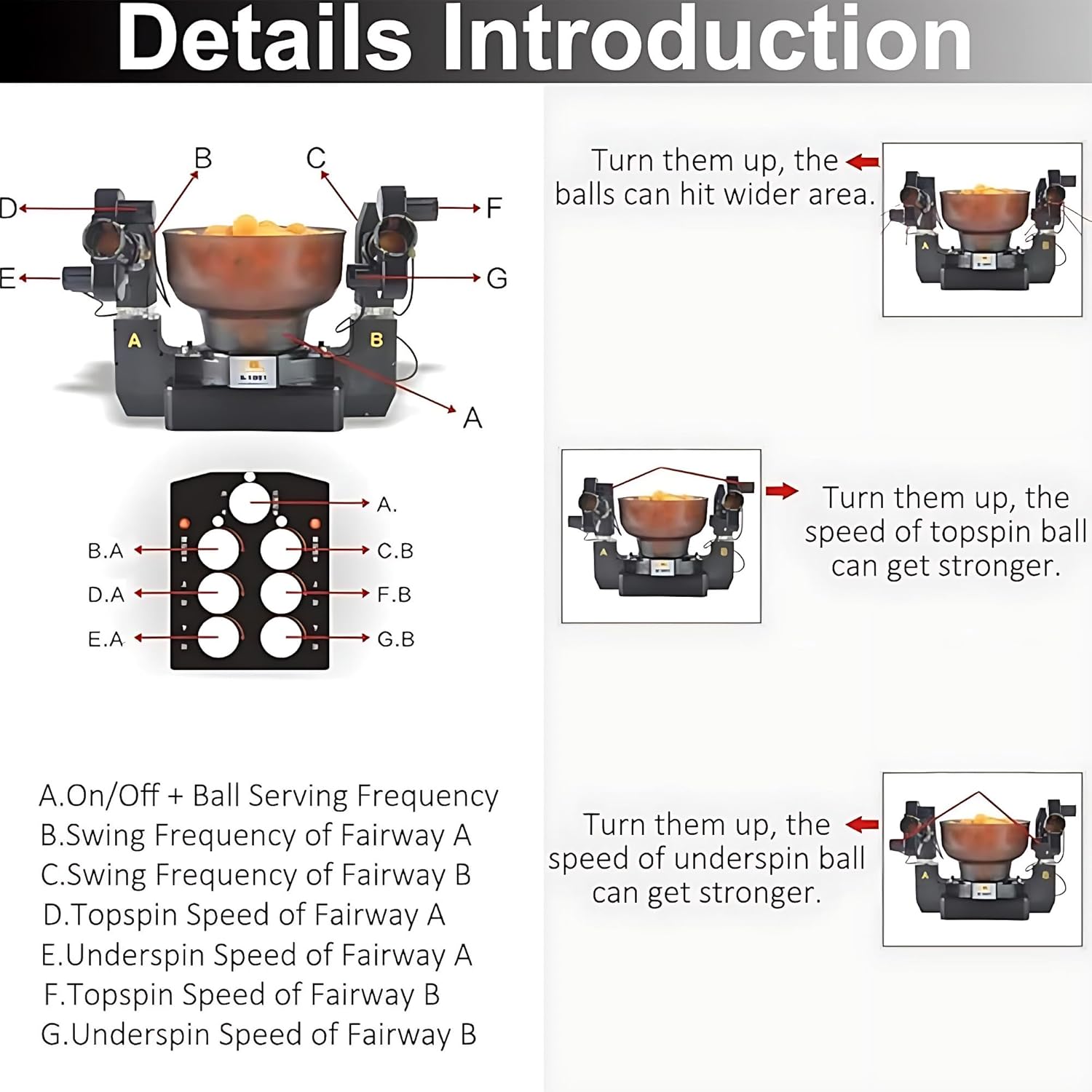 ALLENAMENTO AVANZATO DI PING-PONG: la nostra macchina robot da ping pong a doppia testa** è progettata per giocatori esperti, in grado di contenere circa 110 palline da ping pong con una potenza nominale di 36 W e una frequenza di uscita delle palline di 40-70 palline al minuto, il che la rende uno strumento essenziale per migliorare le tue abilità nel ping-pong. VERSATILE FUNZIONALITÀ A TESTA SINGOLA E DOPPIA: Questa **Macchina Robot Ping Pong-doppia Testa** è dotata di un sistema a doppia testa che consente di regolare separatamente la rotazione della palla e la velocità dello swing. Con l'aggiunta di una copertura per fairway, può essere facilmente convertita in un lanciatore di palline singole per un allenamento mirato. ESPERIENZA DI ALLENAMENTO PERSONALIZZABILE: Ogni testa della **Ping Pong Robot Machine-double Head** può essere controllata in modo indipendente per le impostazioni di rotazione della palla, velocità e swing. Questo livello di adattabilità aiuta a creare un ambiente di allenamento molto simile alle reali condizioni di gioco. PUNTI DI CADUTA RANDOMIZZATI: **Ping Pong Robot Machine-double Head** offre impostazioni di angolazione casuali per ogni testa, consentendoti di impostare punti di caduta su tutto il tavolo. Questa funzione mantiene le tue sessioni di allenamento dinamiche e imprevedibili, simulando efficacemente scenari di gioco reali. CONTROLLER USER-FRIENDLY: Tutte le funzioni della **Ping Pong Robot Machine-double Head** sono facilmente gestibili tramite un controller user-friendly, che consente di regolare la frequenza della pallina, la frequenza dello swing, il top spin e il back spin. Perfetto per migliorare le tue abilità nel ping pong divertendoti con la famiglia e gli amici!