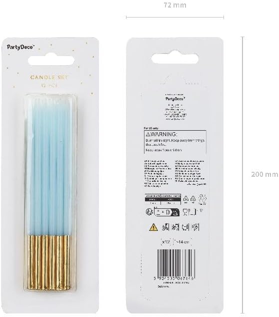 Set da 12 Candele Candeline compleanno colore CELESTE E ORO - 14 cm