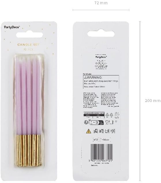 Set da 12 Candele Candeline compleanno colore VIOLA LILLA E ORO - 14 cm