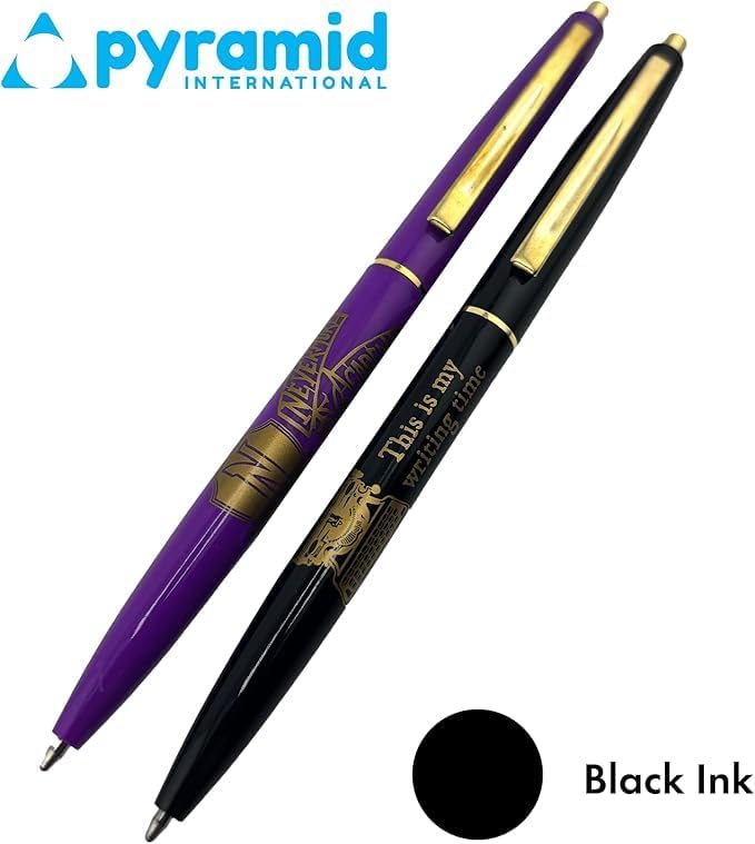 Set di due penne a sfera di alta qualità: questo set di penne mercoledì è perfetto come parte del tuo materiale scolastico da tenere in un astuccio, borsa o zaino e da utilizzare per annotare osservazioni spettrali Mostra mai più design: una penna a sfera presenta lo scudo Nevermore Academy mentre l'altra ha la macchina da scrivere di mercoledì, più la citazione "This is my writing time" L'inchiostro non sbava o sanguina: questa coppia di penne premium è una gioia da usare poiché scivolano senza intoppi su qualsiasi superficie di carta e l'inchiostro di lunga durata non sbava o sanguina mentre scrivi Ottimo regalo per i fan del mercoledì di tutte le età: chiunque ami la serie Netflix sugli studenti della Nevermore Academy, Wednesday Addams mentre cerca di padroneggiare le sue abilità psichiche emergenti, adorerà queste penne distintive MERCHANDISE ORIGINALE MERCHANDISE - confezione di penne basate sulla serie TV horror di successo mercoledì e approvate da Netflix come un vero pezzo di cimeli del mercoledì