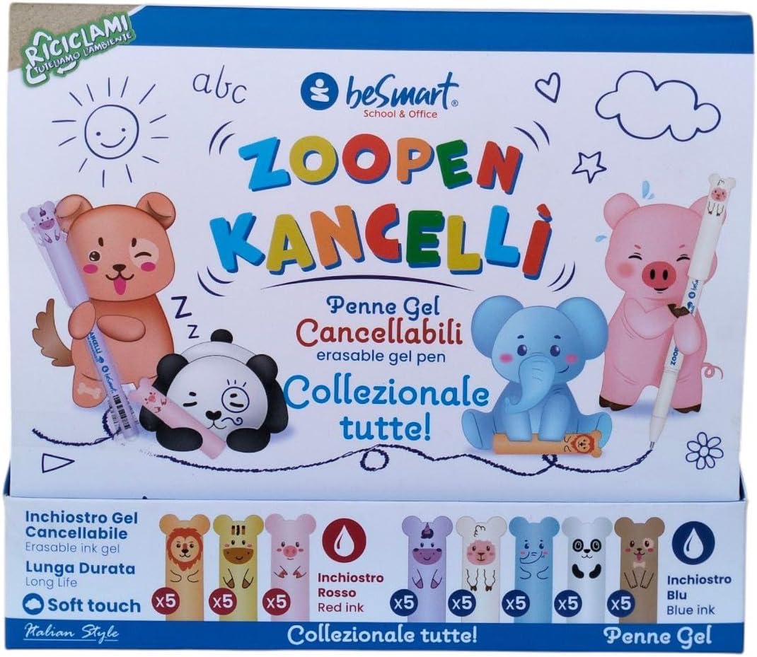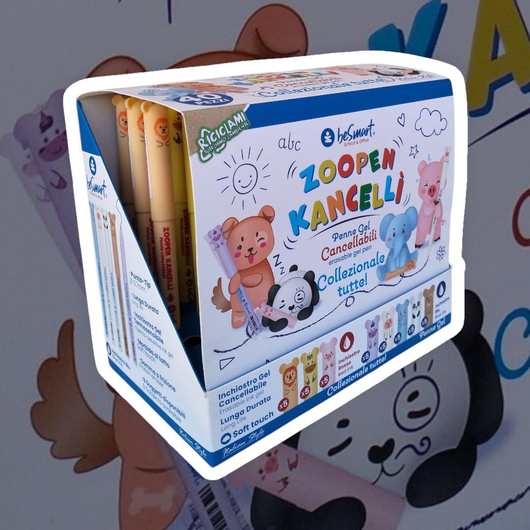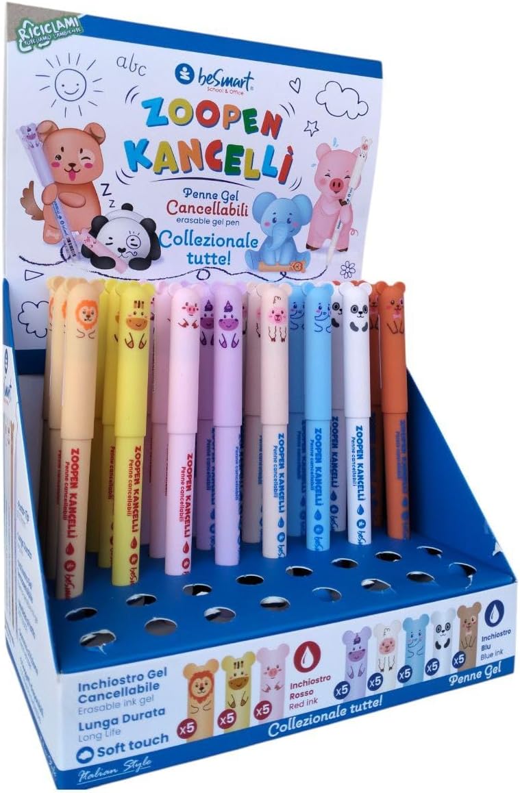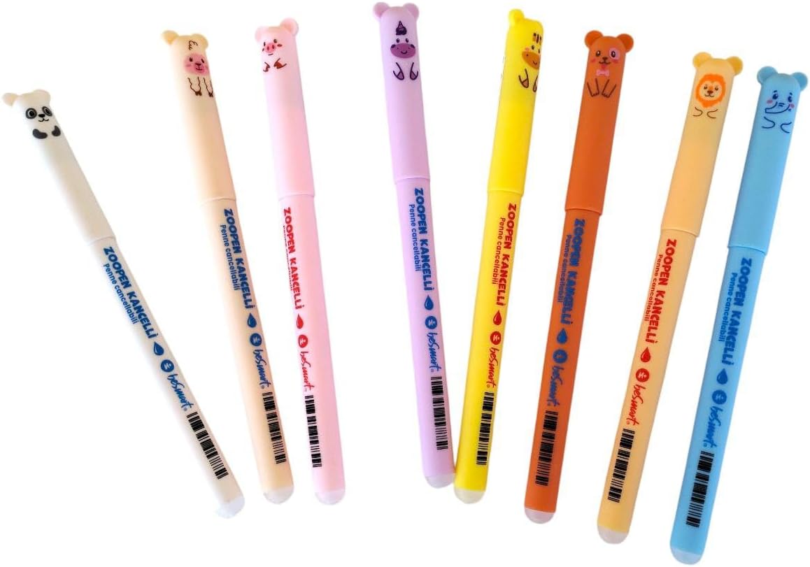 【Set di penne cancellabili per animali】In un solo pack, penne gel cancellabili con temi diversi. presenta amici speciali pronti a dimenticare i tuoi errori e aiutarti a porvi rimedio in men che non si dica. Le penne cancellabili Animali ti permettono di tornare sui tuoi passi in ogni momento. 【Caratteristiche】Penne gel cancellabili di tornare indietro ogni volta che vuoi. La sfera posizionata sull’estremità agisce in incognito, rimuovendo l’inchiostro termosensibile senza consumare né il foglio, né se stessa. la sfera posizionata all'estremità della penna non si usura come le normali gomme, non rovina la superficie interessata e cancella perfettamente. 【DIMENSIONI PUNTA】Set di penne cancellabili per animali un diametro della punta di 0,7 mm, questa simpatica penna è perfetta per ogni tipo di utilizzo, a scuola, in ufficio e nel tempo libero. Diametro di 0,8 cm, altezza 15 cm. Inchiostro termosensibile. 【Multipurposo】Set di Penne Gel Cancellabili, La penna neutra cancellabile è adatta per prendere appunti, scrivere compiti, firmare, disegnare e così via. Possono essere utilizzate a scuola, in ufficio e a casa. Set di penne neutre cancellabili 【Regalo Unico】Abbiamo un universo di mondi a tua disposizione! Creiamo oggetti di qualità sempre diversi, colorati, positivi e divertenti, perfetti per ognuno e per ogni stato d’animo. Penne gel nere adatto a scuola, ufficio, casa, ecc. La penne gel del fumetto è il regalo perfetto per bambini, studenti, familiari, amici e colleghi per feste per bbiamni, compleanni, l'inizio dell'anno scolastico e natale.