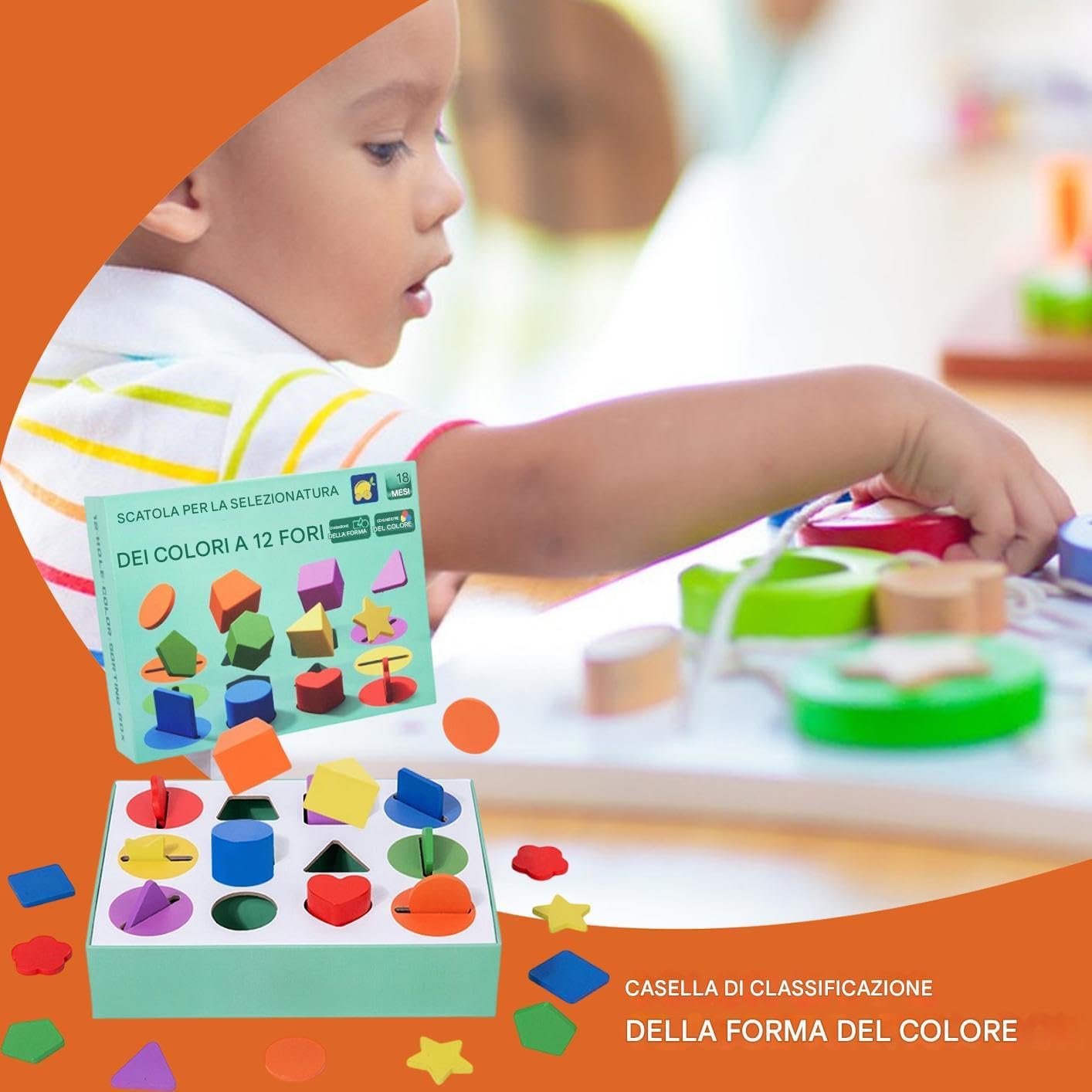 Coinvolgimento Attivo: L'attività con il giocattolo educativo in legno stimola la collaborazione tra adulti e bambini, offrendo un modo divertente per rafforzare le relazioni familiari e sviluppare capacità cognitive attraverso il gioco pratico. 2. Ideale Educativo: Offrite il 'apprendimento con il nostro ordinatore di forme in legno. Un regalo per ogni evento, inclusi Pasqua, compleanni, Natale e Capodanno. Competenze Potenziate: Giocando con questo ordinatore di forme in legno, il bambino incrementa la capacità di identificare le figure, perfeziona la motricità fine, rafforza il ragionamento logico, ottimizza la coordinazione visivo-manuale e accresce le strategie di problem solving Qualità Sicura: Legno selezionato con finitura anti-scheggia, struttura resistente nel che preserva l'integrità del giocattolo durante l'utilizzo quotidiano senza danni Percezione Colori Potenziata: I molteplici colori di questo sorter in legno intensificano la percezione cromatica del bambino contribuendo efficacemente allo sviluppo sensoriale visivo
