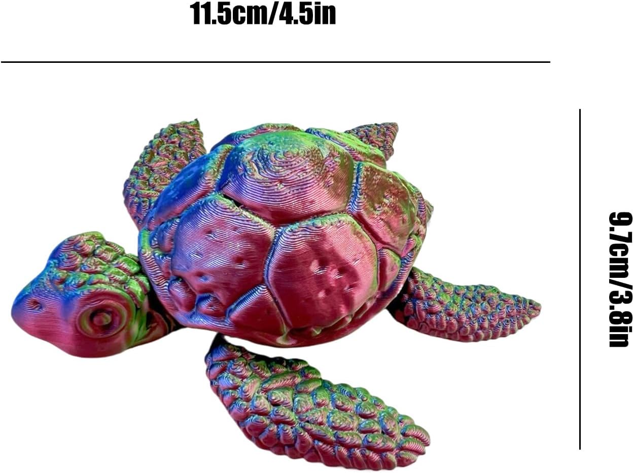 Design realistico della tartaruga marina stampata in 3D: questa statua della tartaruga marina presenta un design stampato in 3D altamente dettagliato con guscio e forma strutturati che offrono un modello animale visivamente sbalorditivo e realistico per gli amanti, i collezionisti e gli appassionati di decorazioni. Giunti articolati per il gioco interattivo: dotata di pinne mobili e giunti flessibili, questa tartaruga articolata funziona sia come un giocattolo agitato che come una scultura decorativa che fornisce stress e coinvolgimento tattile per gli utenti di tutte le età. Perfetto ornamento per scrivania o scaffale: ideale per scrivanie, scaffali, comodini o spazi ufficio, questa statua di tartaruga aggiunge fascino e un dona un senso di calma a qualsiasi stanza, rendendola un'ottima decorazione per uomini, donne, giovani e appassionati di animali marini. Leggera ed ecologica: realizzata in materiale PLA ecologico, questa tartaruga stampata in 3D è leggera ma resistente e offre un giocattolo o un elemento decorativo sostenibile e duraturo, sicuro per bambini e adulti. Regalo per gli innamorati: un regalo premuroso e accattivante per le vacanze di compleanno o semplicemente perché questo modello di tartaruga marina è adatto a ragazzi, ragazze, studenti, colleghi e a chiunque ami l'arte della vita marina o rilassanti giocattoli da scrivania.