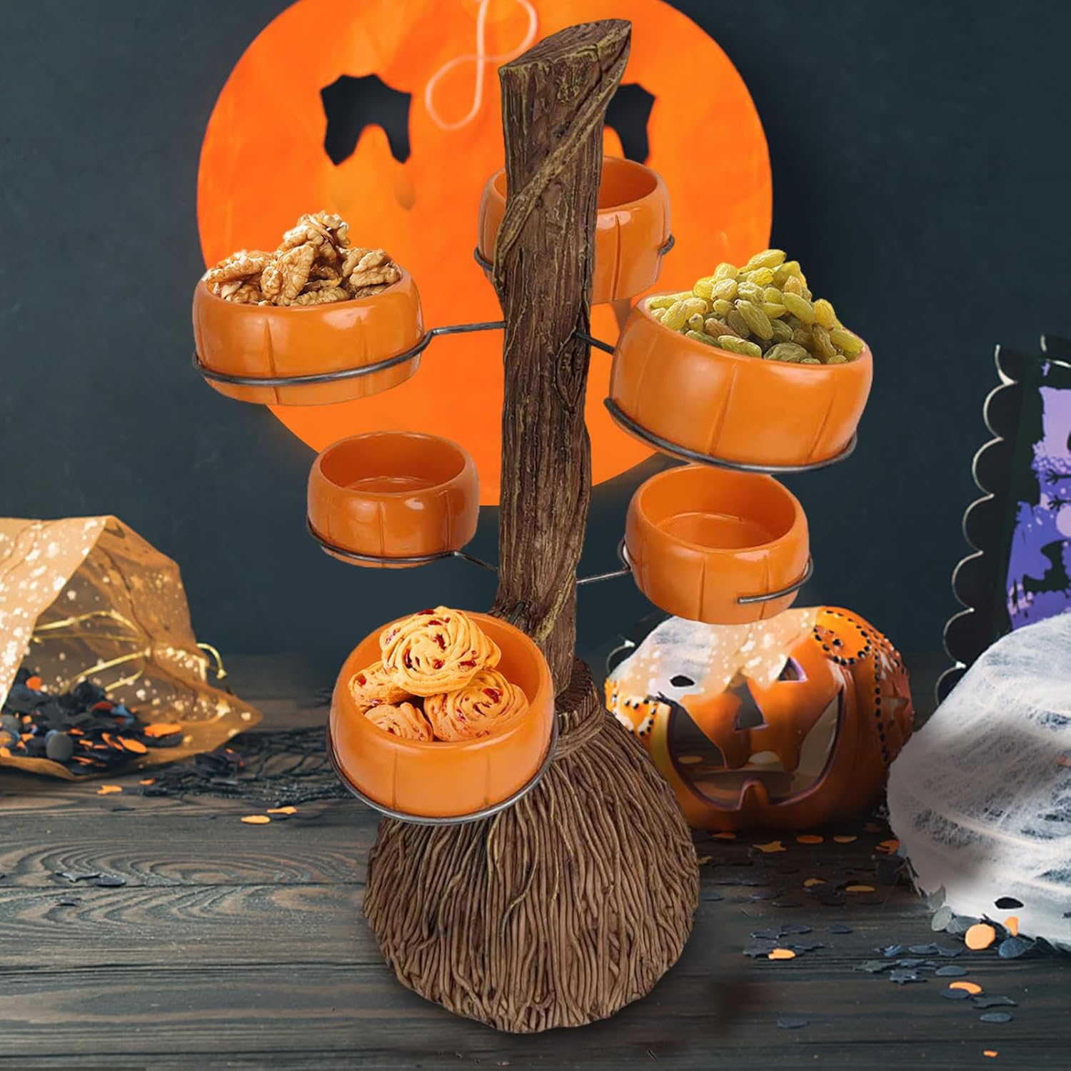 [Design unico della zucca] Aggiungendo elementi alle decorazioni della tua festa, Halloween Candy Bowl presenta ciotole di zucca su un design a forma di manico di scopa, creativo e bello. [Materiali superbi] Il supporto per cupcake è realizzato in materiale di resina di alta qualità, robusto, ecologico e sicuro, durevole per un uso duraturo. [Ampia varietà di applicazioni] Può essere utilizzato per contenere biscotti, cioccolatini, cupcake, antipasti e altri dessert o snack, Pumpkin Bowl è applicabile a varie occasioni, per matrimoni, baby shower, feste di Halloween e altro ancora. [Eccellente maestria] Non facili da rompere, le ciotole di Halloween per caramelle sono trattate con superba maestria, realizzate con trame chiare e aspetti divertenti. [Regali ideali per gli amici] I supporti per dessert sono perfetti per abbinarsi all'arredamento della tua casa di Halloween, possono lasciare una profonda impressione sui tuoi ospiti, meravigliosi regali di festa per amici, vicini e familiari.