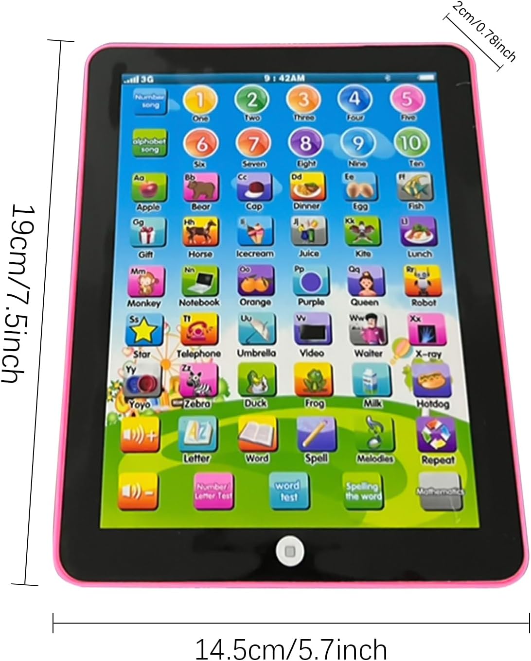 Design multi-modalità: il tablet per bambini consente al bambino di vivere un'esperienza di apprendimento divertente con questo tablet per bambini. Offrendo più metodi, canzoni e ortografia dell'alfabeto, include la regolazione del volume per qualsiasi ambiente. Basta aggiungere 3 batterie non incluse e iniziare il divertimento educativo. Interesse per l'apprendimento precoce: le compresse per bambini chiedono a tuo figlio di pronunciare parole e imparare attraverso immagini affascinanti. Aumenta l"energia e l"interesse di tuo figlio nell"apprendimento migliorando il vocabolario e le abilità di ortografia con la funzione del pulsante a sfioramento. Aiuto per l"apprendimento attivo: tablet per bambini Questo tablet divertente e interattivo per bambini presenta una varietà di brani e canzoni coinvolgenti che possono incoraggiare i bambini a in modo indipendente e ad imparare attivamente; Farai anche alcune domande per testare le loro conoscenze e abilità. Facile da trasportare: tablet per bambini Questo tablet per bambini è facile da trasportare e può aiutare il tuo bambino a imparare attraverso il gioco, con divertenti giochi e applicazioni che gettano le basi per l'educazione all'asilo e proteggono la vista con uno schermo morbido. Adatto come regalo: il tablet per bambini Questo tablet per bambini è un regalo meraviglioso per i bambini di 3 anni che amano imparare e giocare. È dotato di app e giochi preinstallati adatti a ragazzi e ragazze.