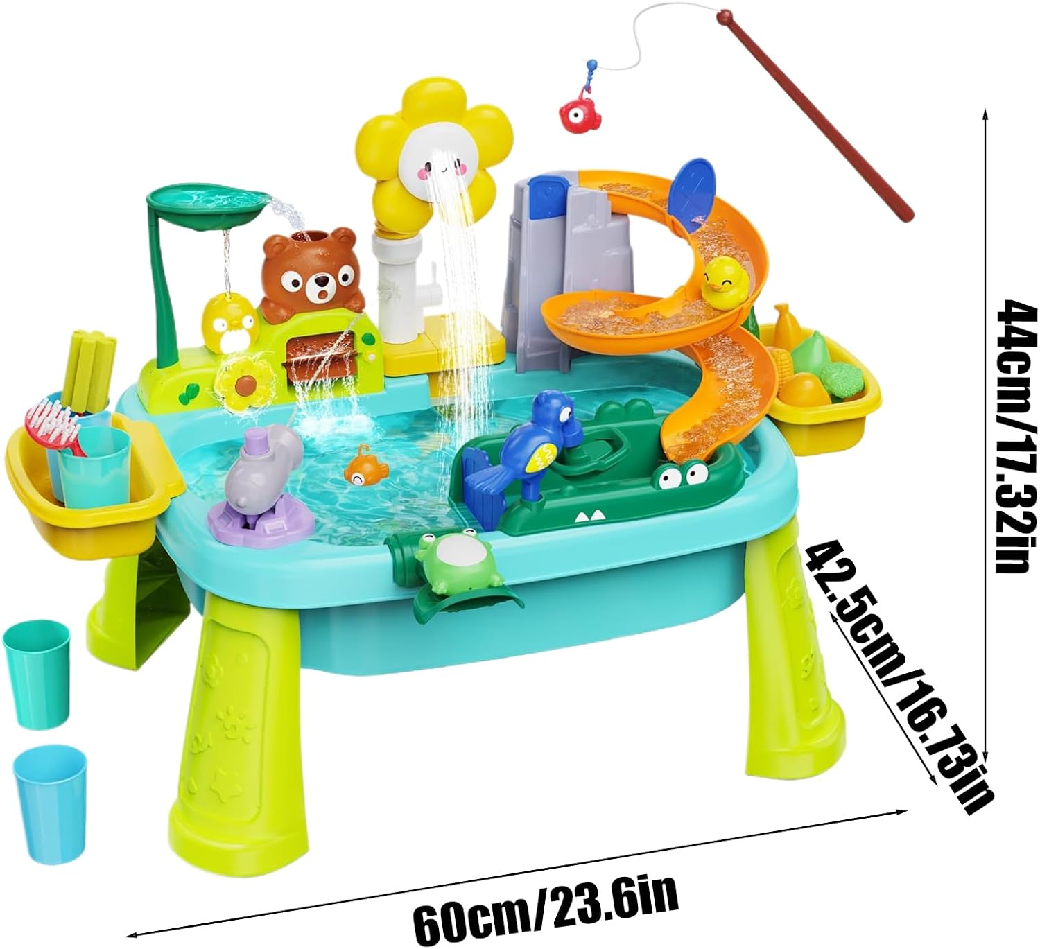 Gioco Creativo Multiruolo: Design collaborativo con attività cucina e per stimolare creatività. realistici favoriscono sviluppo motorio e integrazione sensoriale durante l'esplorazione ludica. Apprendimento Attivo: Potenzia lo sviluppo cognitivo tramite giochi dinamici con acqua, design regolabile in altezza per supporto ergonomico che favorisce la crescita delle abilità motorie essenziali. Occasioni Multiple:Tavolo acqua e sabbia bimbi crea un'estiva area gioco immersiva con doppia modalità, perfetta per piscine domestiche o spiagge. Stimola l'apprendimento interattivo attraverso giochi creativi di costruzione Gioco Sensoriale Acquatico:Ispira i bambini con l'osservazione di traiettorie galleggianti e dinamici giochi sensoriali di flusso d'acqua, sviluppando capacità logiche e creatività immaginativa durante esperienze pratiche di scoperta della fisica per l'infanzia. Divertimento Acquatico a Batteria: Avvicina il bambino alla consapevolezza idrica con tavolo acqua dinamico dotato di modalità pioggia simulata e flusso acqua creativo, perfezionato da area gioco interattiva a forma di girasole