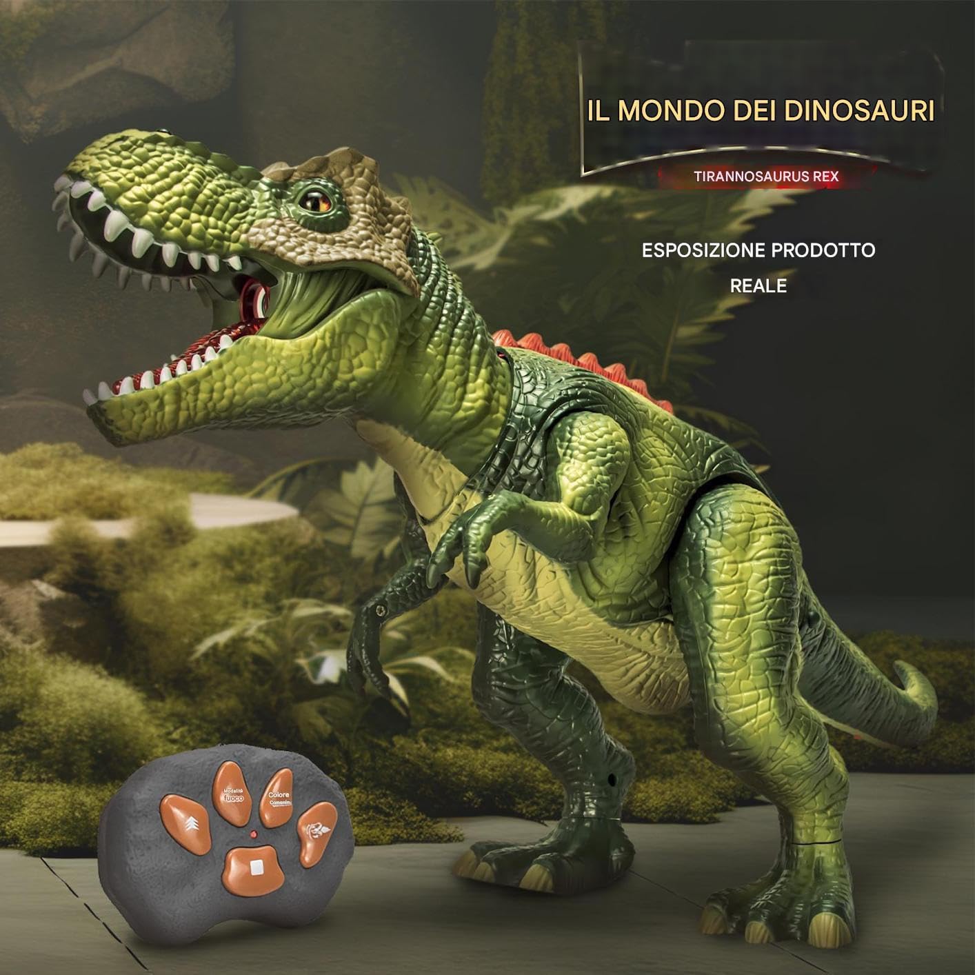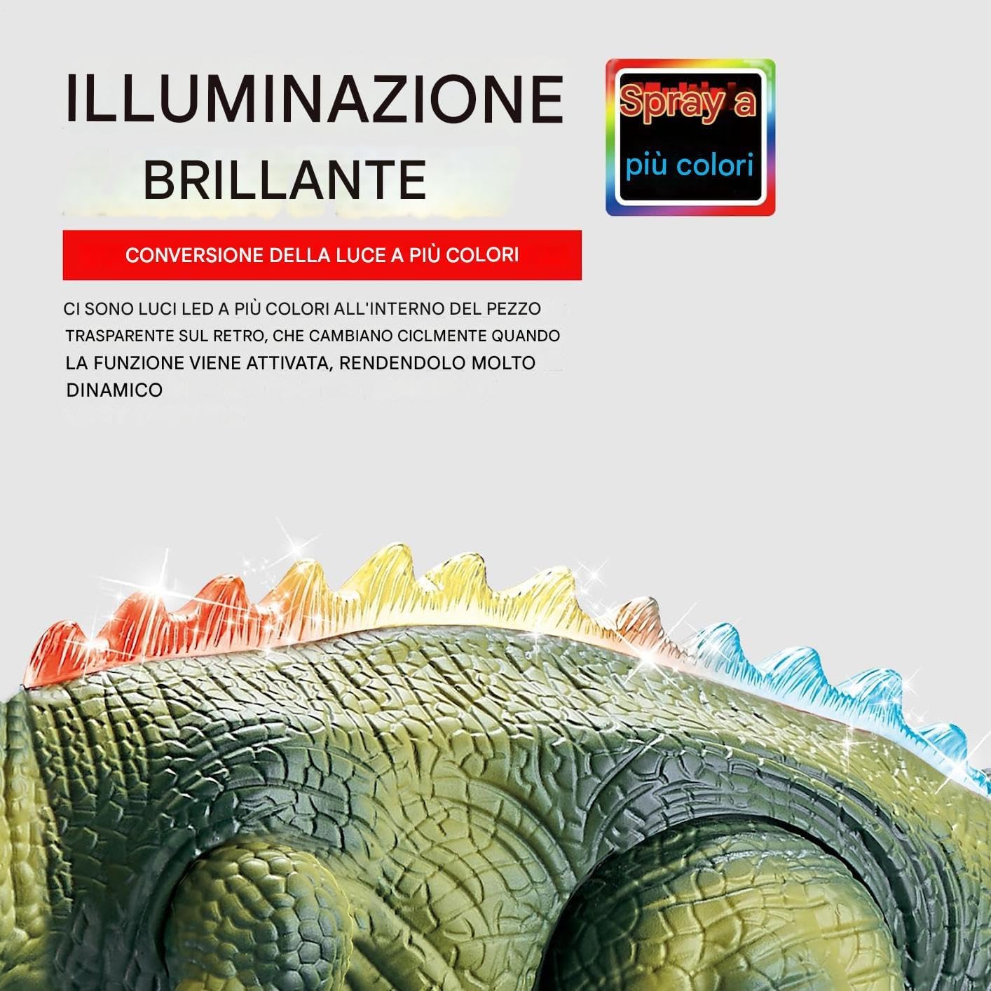 Precisione Artistica:Tecniche pittoriche ad alta definizione e texture muscolari realistiche, arricchite da dettagli squamati vividi. Modello visivamente sorprendente per esposizione o intrattenimento interattivo, con finiture che emulano caratteristiche anatomiche. Decorazione Coinvolgente: Promuove l'arredamento domestico integrando divertimento nelle riunioni familiari, questo dinosauro telecomandato valorizza eventi a tema e si allinea perfettamente spirito delle celebrazioni festive Sicurezza Bordi Arrotondati: Design con bordi arrotondati migliora la sicurezza durante l'uso. Protezione meccanica stabile e materiali resistenti garantiscono una durata affidabile per un divertimento prolungato. Controllo Semplice: Setup telecomando intelligente per movimenti dinamici, suoni e luci coordinati, garantendo interazioni divertenti e utilizzo immediato per tutti. Avventura Preistorica: Unisce design accattivante, illuminazione delicata e LED cangianti per un'esperienza immersiva che appassiona i bambini durante l'esplorazione del giurassico.