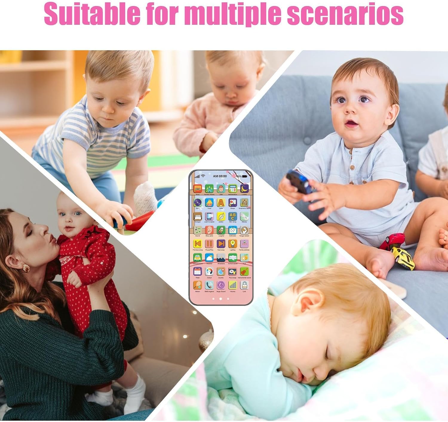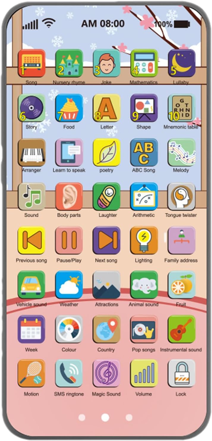Apprendimento Interattivo: Oltre 40 pulsanti attivano contenuti educativi come filastrocche, versi animali, nomi di alimenti, lezioni sui colori e indirizzi. Stimola la curiosità con un approccio ludico. Coinvolgimento completo: Favorisce lo sviluppo linguistico, cognitivo e l'intelligenza emotiva; potenzia le capacità di problem solving e la comunicazione sociale, rafforzando il genitori-figli. Stimolazione Sicura: Offri esperienze visive e uditive eccellenti con luci LED morbide che attirano facilmente l'attenzione. Regola il volume per stimolare i sensi in modo equilibrato. Gioco sostenibile: Materiali ecologici atossici e design ergonomico con bordi arrotondati promuovono un divertimento sicuro, stimolando le capacità di apprendimento dei bambini. Adatto alle manine: Progettato per i più piccoli, questo telefono giocattolo ha touch screen per giochi interattivi, dimensioni perfette per le mani dei bambini e aspetto realistico per divertenti giochi di ruolo.
