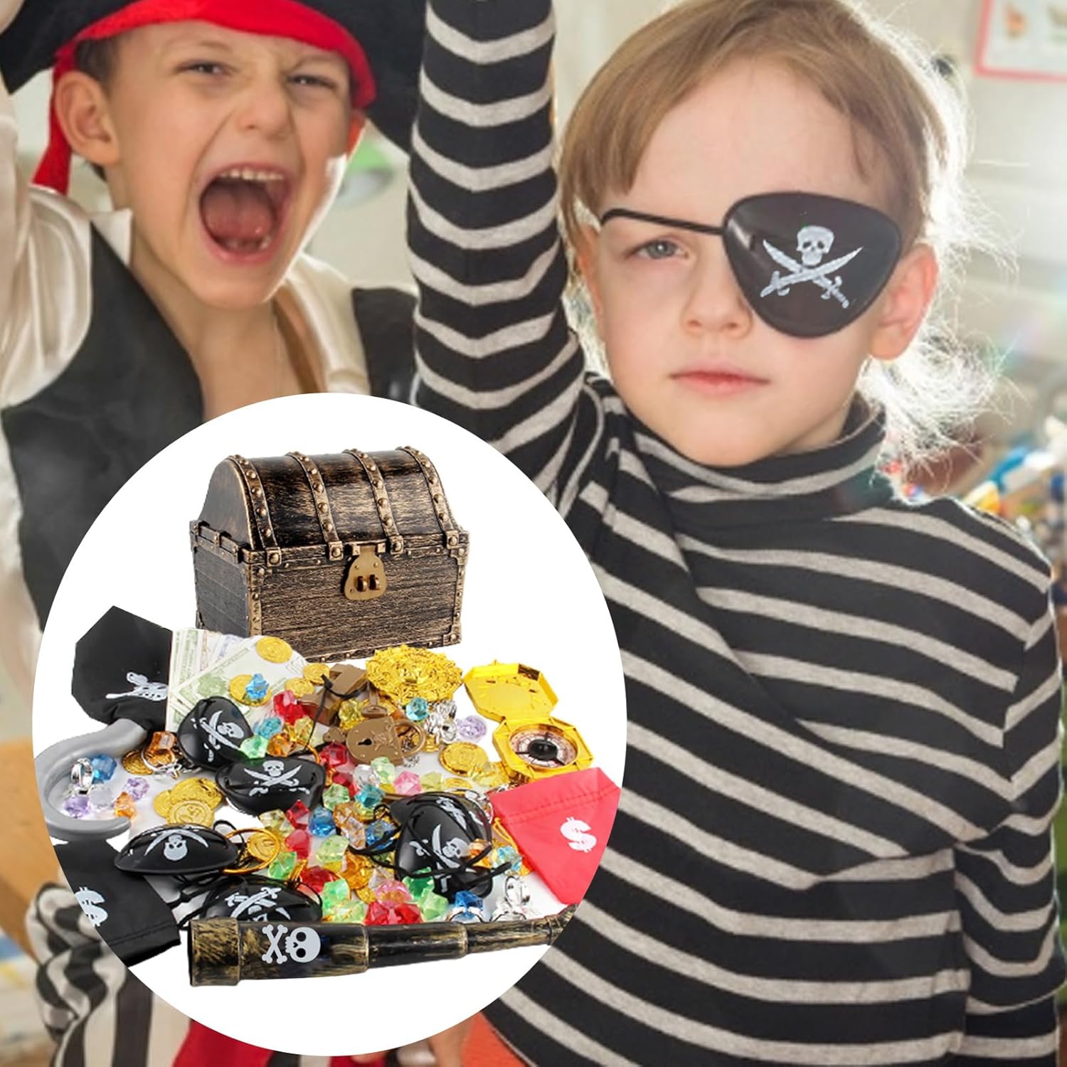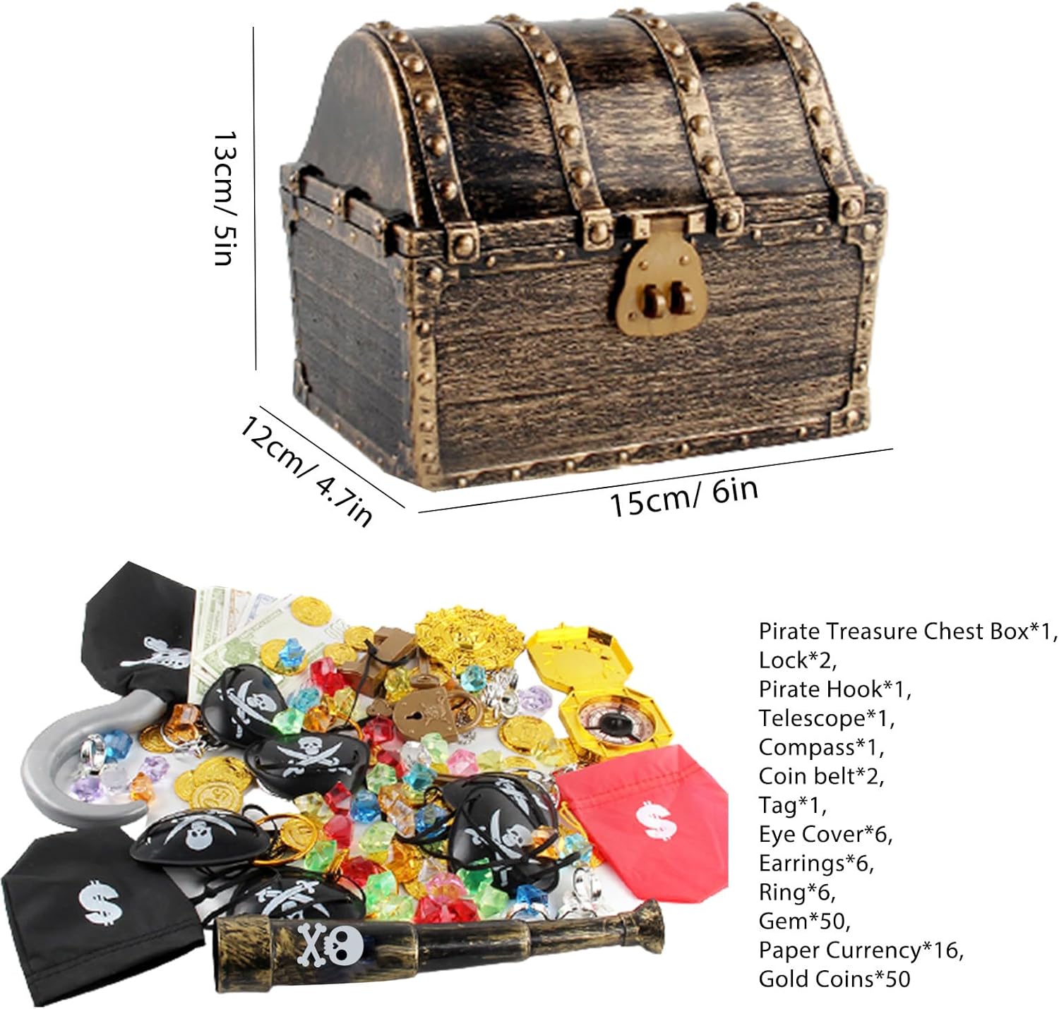Pieno di oggetti pirati: ottimo per abiti eleganti o riunioni familiari, il set di tesoro dei pirati include 1*scatola pirata, blocco*2, gancio pirata*1, telescopio*1, *1, cintura di moneta*2, hangtag*1, patch per gli occhi*6, orecchino*6, ring*6, gems*50, banknotes*16 e ciglia d'oro*50, adatto per . Applicazione 'ambito: adatto a feste a tema pirata, cacce al tesoro, carnevali, cosplay, ecc., Giocare al pirata Tesoro è ottimo per i di tutte le età e un ottimo modo per condividere la gioia con la tua famiglia. Aggiungi più divertimento alla festa: il tesoro dei pirati per sta aggiungendo più divertimento alla tua festa a tema pirata, con linee chiare e grafica realistica, in arrivo con gemme false, monete, patch per gli occhi e una . Facile organizzazione: misurare circa 15*12*13 cm/ 6*4,7*5in, il torace pirata per è adatto come una piccola scatola di stoccaggio di giocattoli per ridurre la perdita, aiutando i a prendere l'abitudine di riordinare i loro giocattoli. Quantità adeguata: il giocattolo del tesoro pirata è sufficiente per vestirli o condividere con gli altri, un regalo meraviglioso per adolescenti, studenti e scolari e anche ideale per le esibizioni sul palcoscenico scolastico.