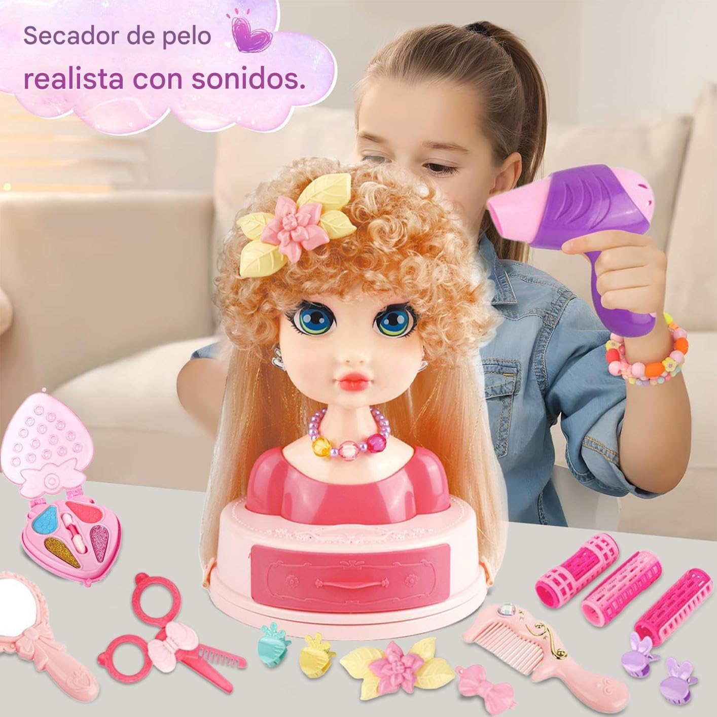 Resistente e sicuro: realizzata con materiali premium, la testa è inodore e morbida al tatto, permettendo ai bambini di partecipare a creazioni di acconciatura creative senza fastidi e rischi Strumenti creativi diversi: 26 utensili che offrono ampie possibilità di sperimentare acconciature, coprendo diverse esigenze di utilizzo mentre ispirano la creatività dei bambini Ispirare divertimento: divertiti con i giochi da parrucchiere praticando tecniche di acconciatura e decorazione su una testa per lo styling, progettata per rendere lo styling divertente e interattivo per i bambini. Creatività attiva: ispira l'immaginazione dei bambini come regalo di compleanno o feste. Promuove giochi interattivi ed espressione artistica attraverso attività di styling pratico. Espressione artistica per bambini: incoraggia la creatività nei bambini con giochi interattivi di parrucchiere, nutre le loro abilità manuali e sviluppa la passione per l'espressione di sé creativa durante il tempo di gioco