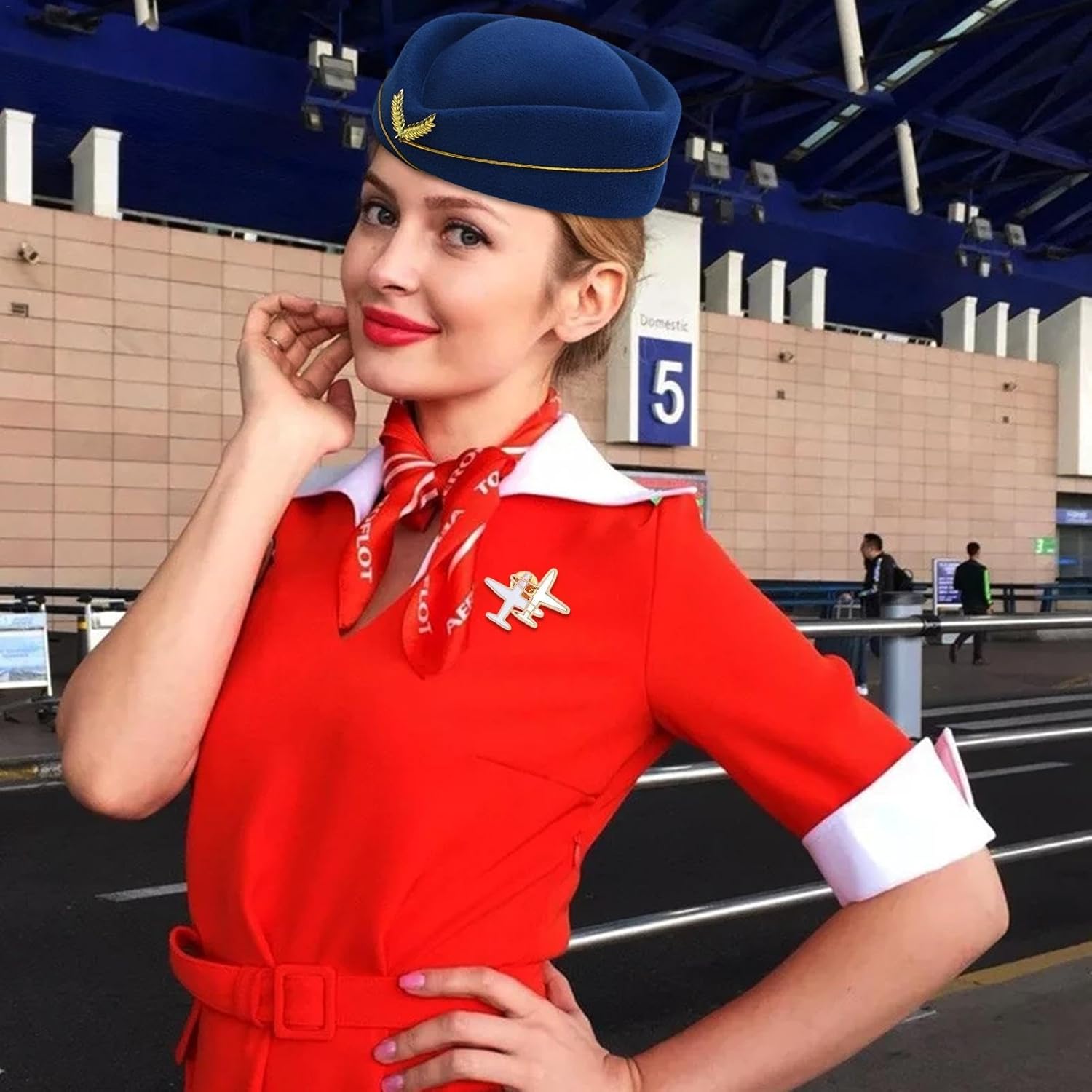 Descrizione prodotto Descrizione: Questo cappello da assistente di volo è realizzato in materiale flessibile e resistente in grado di resistere all'usura. Lo squisito ricamo aggiunge eleganza e stile a te. Il colore della moda si abbina a qualsiasi costume e ti fa risaltare. I guanti comodi sono morbidi e lisci, perfetti per le esibizioni sul palco. Sia che tu voglia il cosplay come assistente di volo ravvivare la tua festa, questo set di cappello e guanti è un accessorio indispensabile. Caratteristiche: Materiale: panno Dimensione del cappello: 56-58 cm / 22-22,8 pollici Dimensioni della sciarpa di seta: 50 * 50 cm / 19,68 * 19,68 pollici Peso: circa 220 g Lista imballaggio: Cappello da hostess * 1 Sciarpa di seta * 1 Occhiali da sole*1 Guanti * 1 paio Spilla aereo * 1 Avviso di sicurezza Non applicabile