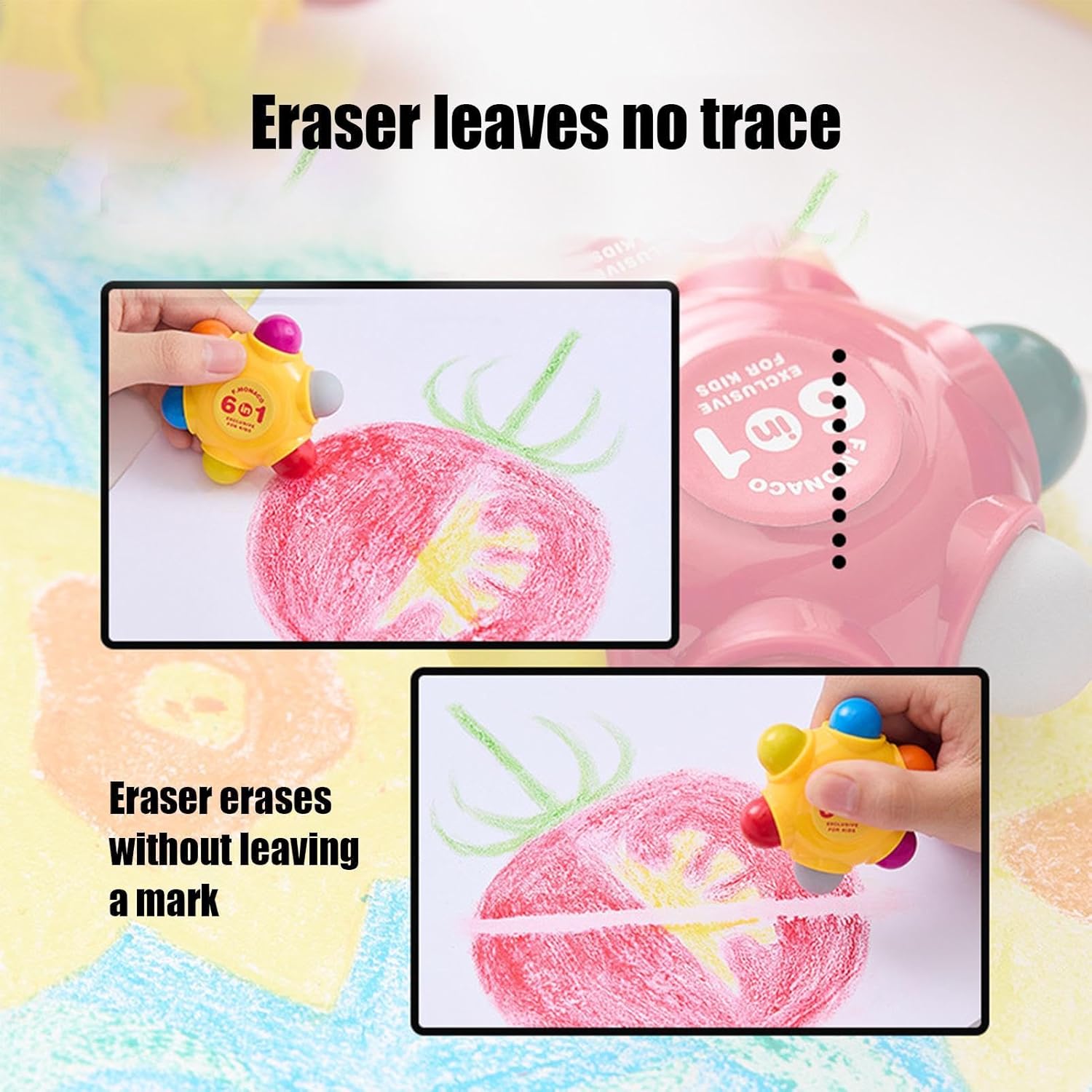 Washable Crayons for Kids: These washable crayons are perfect for young artists. Easy to clean off most surfaces, they allow children to draw and color freely without worrying about stains on clothes or furniture Coloring Crayons for Fun: Designed for creative fun, these coloring crayons come in a vibrant range of colors. They are ideal for drawing, coloring, and doodling, helping kids express themselves while improving their fine motor skills Eraser Crayons for Mistakes: The eraser crayons feature an integrated eraser tip, allowing kids to easily correct mistakes. Perfect for little hands, they help build confidence while drawing, giving kids the freedom to create without fear of errors Crayons for Boys and Girls: Whether for boys or girls, these crayons are designed for all children aged 2 to 10. Their smooth, bright colors make them a hit with young artists, encouraging creativity and imaginative play Safe and Easy to Use: The crayons are designed with safety in mind, using nontoxic materials that are safe for children. The ergonomic shape makes them easy to hold for younger kids, helping them learn to color and draw with ease