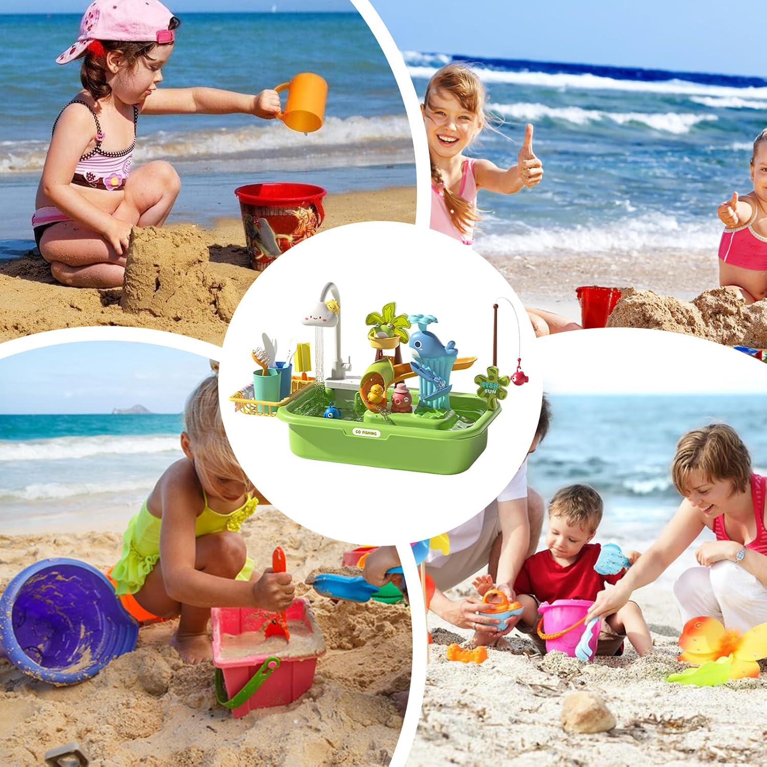 Dynamic Flow System: Delivers a seamless experience through its electric pump-powered multi-functional system, supporting 360-degree water circulation that is intuitive to operate and ideal for stimulating creative play scenarios Cognitive Growth Boost: Enhances cognitive skills through fishing and washing role-play, delivering an engaging and immersive water table experience with realistic scenarios designed to spark curiosity and fun Smart Storage And Drainage: This water table's expandable design and modular basins enable multi-theme activities, paired with efficient drainage and storage for added convenience Safety Ensured: Rounded corners paired with a safe interaction structure provide peace of mind, while the sturdy leak-proof seal supports untroubled water-based entertainment Foster Family Unity: Long-lasting, playful learning is achieved with rich accessories, which support parent-child bonding and offer interactive slide, and role-play modes for kids