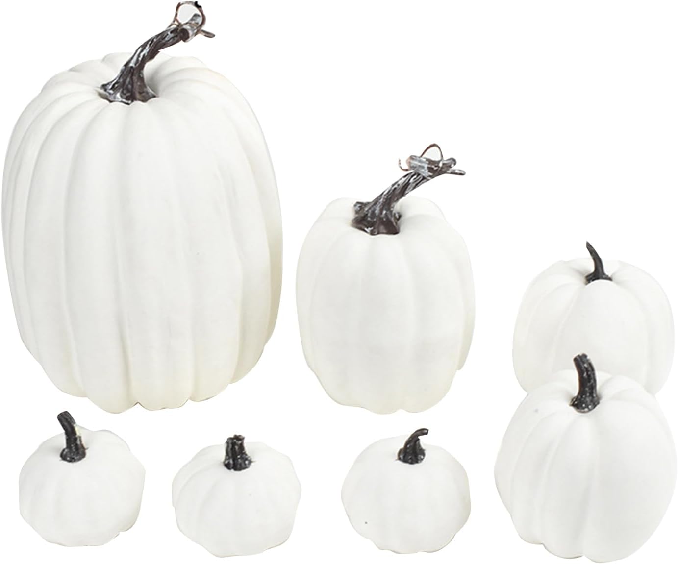 Tela Decorativa: Oltre a essere decorazioni queste zucche finte fungono da neutre pronte per accogliere il tuo tocco creativo per adattarsi a qualsiasi stile estetico nelle composizioni festive autunnali Ideali per feste:Decorazioni perfette per matrimoni autunnali e celebrazioni, queste zucche finte riutilizzabili sono eccellenti per Halloween, Thanksgiving e come accessori fotografici creativi. Composizioni Valorizzate: Migliora gli spazi domestici con atmosfere studiate create da decorazioni a tema, perfette per occasioni festive grazie a disposizioni versatili Schiuma Robusta: Realizzate in schiuma resistente alle intemperie, queste zucche finte mantengono l'aspetto attraente senza rompersi, ideali per decorazioni esterne durevoli e versatile impiego stagionale Realismo: Ideali per decorazioni a tema raccolto queste zucche finte realistiche arricchiscono gli spazi con calore grazie a sette pezzi di misure varie creando composizioni autunnali di grande effetto senza sforzo