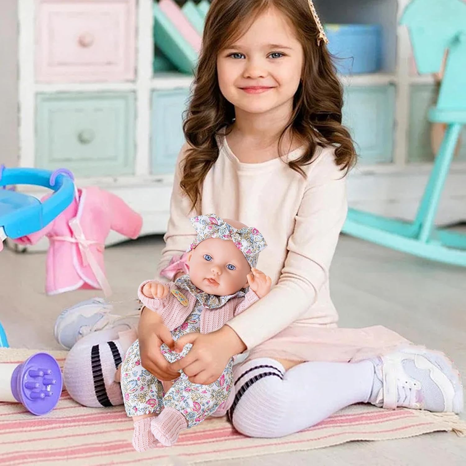Stile Giocoso: L'abbigliamento curato con maglioncino, vestito floreale e in pizzo aumenta il coinvolgimento ludico. Ideale per il gioco interattivo o come elemento decorativo che attira naturalmente l'attenzione. Igiene Senza Sforzo: Progettata per una pulizia agevole con acqua, la garantisce durabilità a lungo termine preservando la consistenza e resistendo alle macchie. Superfici sempre igienizzate senza durante la manutenzione delicata. Perfetta per Occasioni: Sostenendo la crescita emotiva, questa è creata per ispirare connessione e gioia, servendo come regalo premuroso per compleanni e feste, fondendo perfettamente intrattenimento e creazione di legami affettivi duraturi. Design Coinvolgente: Materiali soffici e confortevoli imitano la texture cutanea infantile per un'esperienza tattile autentica, migliorando la connessione emotiva grazie al realismo e alla morbidezza percepibili naturalmente Compagno Relax: Progettato per favorire sonno e rilassamento, promuove comfort emotivo con calmante e presenza rasserenante che placa lo stress durante la ricerca di pace