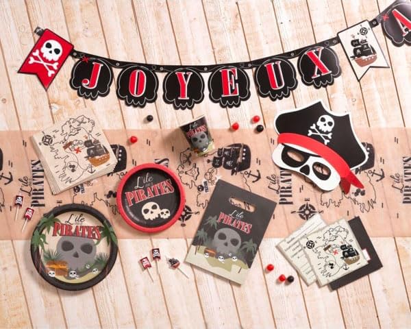 DESIGN TEMATICO: biglietti d'invito in stile mappa del tesoro con illustrazioni pirata, barca, isola e croce rossa per un'atmosfera di avventura autentica Contenuto della confezione: 6 biglietti d'invito con 6 buste abbinate, perfettamente coordinate per una presentazione elegante DIMENSIONI IDEALI: Formato quadrato 14,5 x 14,5 cm, dimensione perfetta per inviti di compleanno QUALITÀ PREMIUM: carta spessa di alta qualità, ideale per la scrittura, con una finitura pulita in nero, beige, rosso e bianco PRESENTAZIONE SOGNATA: Carte prestampate con menzione 'L'isola dei pirati' e spazio dedicato per personalizzare i dettagli dell'evento