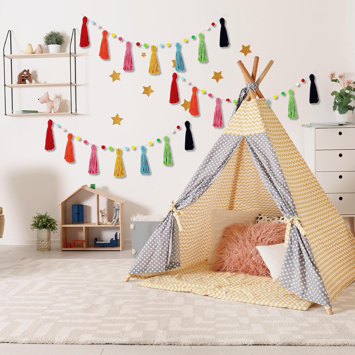 Sete: questa ghirlanda colorata Boho Tassel incorpora perline di legno per infondere spazi con un fascino di decorazione bohémien, un'estetica della sala di elevazione e un'atmosfera calda e invitante ideale per occasioni speciali o per un relax quotidiano Scelta ideale: le ghirlande di nappa offrono transizioni decorative senza attraverso vari spazi, offrendo estetica coesiva e soluzioni redditizie, adatte per eventi interni o esterni Decorazione della famiglia: la Garland Boho è realizzata in morbido cotone e materiale solido per garantire che sia privo di scoppio, il che rende il bambino sicuro per le case con le sue decorazioni da Garland a nappa migliora gli spazi abitativi offrendo tranquillità durante le riunioni di famiglia o il tempo di gioco Diverse occasioni: questa ghirlanda boho per la classe funge da pezzo decorativo che illumina gli spazi con colori festivi, favorendo un'atmosfera quando viene utilizzata come tela o decorazione da parete, perfetta per aule e riunioni di festa Diverse forme incluse: Con la sua funzione di configurazione rapida, l'arredamento per feste Tassel Garland semplifica le attività di decorazione, consentendo agli ospiti di prestare attenzione al loro delizioso evento aggiungendo un tocco di fascino a decorazioni, tavoli o ingresso in occasioni speciali