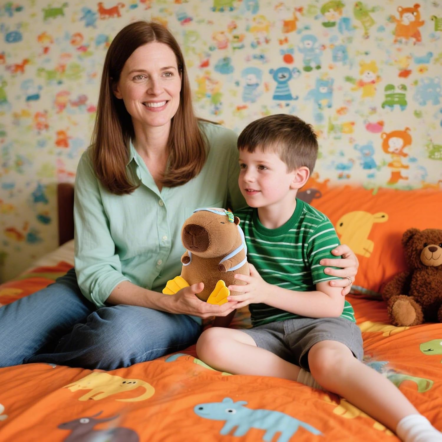 4. Perfetto compagno di ufficio: simpatico peluche dal design capibara e costume da bagno estivo, accattivante pezzo decorativo che migliorerà qualsiasi ambiente. Per gli appassionati di creazioni di animali originali e di carattere. Sicurezza ed estetica: peluche Capybara, cuciture rinforzate e bordi lisci e sicuri. Il costume da bagno finemente dettagliato valorizza il suo aspetto garantendo allo stesso tempo comfort e praticità. Peluche da esterno - La forma si adatta perfettamente agli zaini e garantisce una portabilità ottimale, rendendo questo capibara di peluche un compagno di avventure facile da trasportare e sempre pronto. Ecologico e morbido: goditi una consistenza delicatamente morbida grazie al tessuto ultra morbido combinato con una struttura robusta come un tenero compagno, riempito con PP ecologico per un fascino duraturo e un comfort rilassante Atmosfera estiva: porta un sorriso con questo peluche capibara nella sua confezione ispirata all'estate che ne esalta il fascino come regalo di compleanno premuroso che irradia positività negli ambienti
