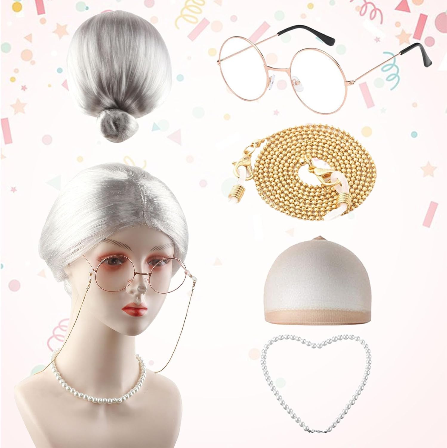 Set di parrucche da vecchia signora di 100 giorni di scuola Costume vecchio stile per bambini Ragazzi e ragazze Festa compreso parrucca Occhiali Collana Catena per occhiali e capelli 100 giorni di scuola per la vecchia signora, travestimento vecchio stile per bambini, festa per ragazzi e ragazze, include parrucca, occhiali, collana, catena per occhiali e uno per capelli. Materiale: fibra sintetica. Colore: come mostrato nell'immagine (a causa della differenza tra i diversi monitor, il colore potrebbe essere leggermente diverso. Si prega di assicurarsi che questo non sia un problema prima di ordinare, grazie! ). Peso della confezione: 200 g. Dimensioni della confezione: 40 x 35 x 3 cm (si prega di considerare un errore di 1-3 mm a causa della misurazione manuale. Si prega di assicurarsi che questo non sia un problema prima di ordinare