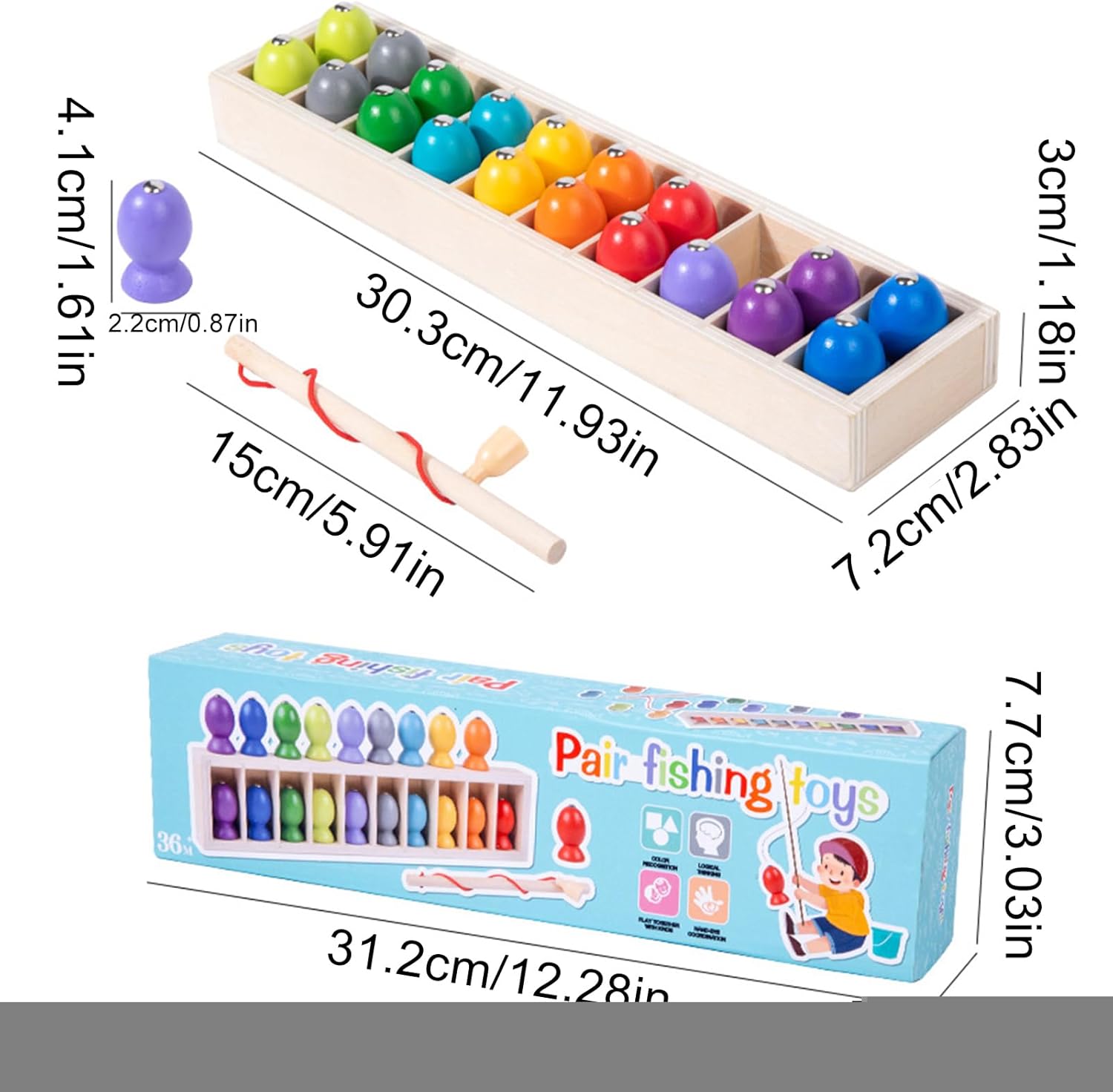 Apprendimento dei colori: Promuove il riconoscimento del colore e l'identificazione visiva attraverso un'esperienza accattivante di pesca magnetica, uno strumento didattico progettato per rafforzare queste abilità fondamentali in modo interattivo Esperienza di complicità familiare: progettato per riunire le famiglie, questo gioco di pesca magnetico offre un intrattenimento flessibile adatto a diverse dimensioni di gruppo, garantendo un'esperienza di collegamento unica attraverso il gioco interattivo per Attenzione prolungata: promuove il miglioramento della durata di concentrazione integrando esercizi stimolanti memoria e attenzione in un gameplay divertente, aiutandoli a sviluppare gradualmente la loro resistenza mentale divertendosi con le sfide di pesca magnetica, progettate per stimolare la crescita cognitiva. Sviluppo delle competenze motorie: Incoraggia l'affinamento delle capacità motorie e della coordinazione mano-occhio attraverso specifiche azioni di pesca magnetica. Consente agli utenti di praticare movimenti precisi durante un'attività di sviluppo soddisfacente e giocosa. Materiali per bambini sicuri: realizzato in legno naturale con bordi lucidati, questo gioco di pesca magnetico privilegia durata e sicurezza per offrire ore di gioco senza rischi a qualsiasi età