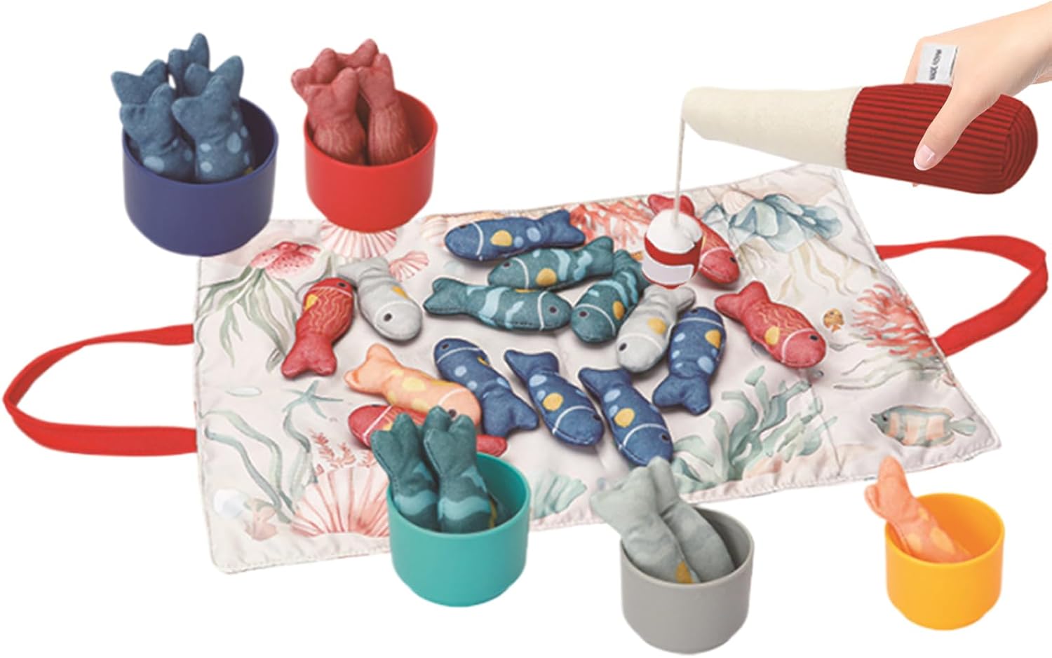 Esperienza Esterna Migliorata: il tappeto in tessuto pieghevole offre una scena di gioco completa con spazio leggero ed economico, perfetto per un uso versatile all'aperto o all'interno per i giochi di pesca. Apprendimento progressivo: questo gioco di pesca per bambini offre livelli di difficoltà progressiva per sviluppare la coordinazione occhio-mano grazie agli adesivi tattili. Ideale come strumento di esplorazione interattiva, favorisce momenti di complicità genitore-figlio durante sessioni di gioco sensoriali. Sicurezza visiva e taglianea: colori vivaci affascinano le giovani menti stimolando la crescita visiva, con un design adatto ai tappetini da gioco che offre una struttura in tessuto morbido e texture in rilievo per incoraggiare un gioco sensoriale sicuro, proteggendo naturalmente la pelle delicata dei bambini. Apprendimento: Offrendo un'educazione sulla vita, questo gioco di pesca stimola il pensiero logico e incoraggia il gioco di ruolo. La sicurezza è garantita da bordi arrotondati e materiali standard di coloranti alimentari per esperienze di gioco esplorativo con fiducia. Pazienza e precisione: il sistema di pesca magnetico adatto ai giovani rafforza il controllo motore e la pazienza, con pesci adesivi che rendono l'apprendimento giocoso e accattivante.