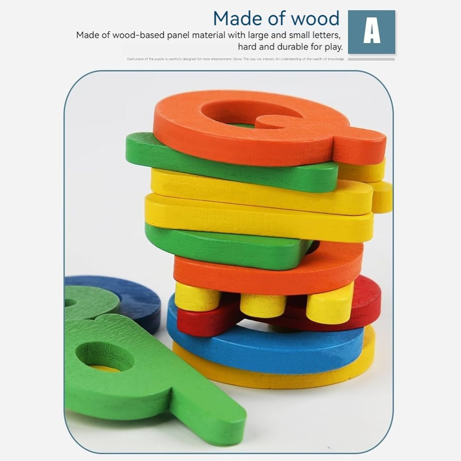 Risorsa educativa precoce: come fornitura per l'asilo, questo giocattolo rafforza l'educazione precoce incoraggiando il pieno sviluppo delle competenze, affinando la coordinazione occhio-mano e promuovendo un'attenzione sostenuta nel bambino. Sviluppo del Pensiero Spaziale: Promuovi la consapevolezza spaziale critica quando il tuo piccolo esplora il puzzle alfabeto, aiutandolo a comprendere le relazioni tra forme, lettere e spazi durante sessioni di gioco pratiche ed educative. Apprendimento giocoso e sensoriale: il gioco educativo promuove il riconoscimento delle lettere attraverso attività progressive di costruzione di parole e associazione di forme, mentre gli elementi tattili testurizzati arricchiscono l'esperienza di assemblaggio di puzzle per i più piccoli. Design interattivo dell'alfabeto: progettato con una codifica a colori ad alto contrasto, il giocattolo cattura efficacemente l'attenzione dei bambini e agisce come un supporto di memoria categoriale, favorendo l'associazione lettera-suono in un ambiente di apprendimento autonomo. Aiuto Memoria Ortografica: questo giocattolo di apprendimento dell'alfabeto per bambini aiuta a eccellere nel riconoscimento delle lettere combinando maiuscole e minuscole, promuovendo le prime abilità di alfabetizzazione attraverso l'apprendimento comparativo migliorando la memoria ortografica attraverso una pratica manuale e interattiva