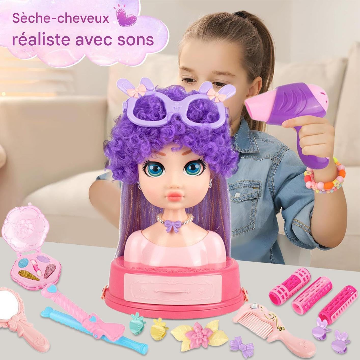 Giocattolo realistico e sicuro: realizzato in materiale ABS sicuro, senza parti taglienti o odori sgradevoli. Incorpora funzioni realistiche di asciugacapelli con simulazione del flusso d'aria per un gioco di ruolo coinvolgente Fantasy Salon Adventure: porta in vita il divertimento di gestire un parrucchiere, ispirando creatività, esplorazione e pratica di acconciatura fantasiosa per secoli in un universo giocoso dedicato alle acconciature. Acconciature illimitate: capelli ricci dorati che offrono una moltitudine di opzioni di styling come spazzolatura, treccia e avvolgimento. Formato compatto appositamente studiato per incoraggiare l'espressione creativa dei giovani attraverso il gioco. Regalo divertente: eccellente per compleanni, vacanze o eventi speciali. Gli utenti esplorano le tecniche di acconciatura mentre si divertono con attività di gioco di ruolo interattive e coinvolgenti con gli amici Kit completo: con 31 accessori tra cui asciugacapelli, ferro arricciacapelli e strumenti per lo styling, questo giocattolo stimola l'immaginazione e soddisfa le varie esigenze di acconciatura per possibilità creative illimitate nel gioco di finzione infantile
