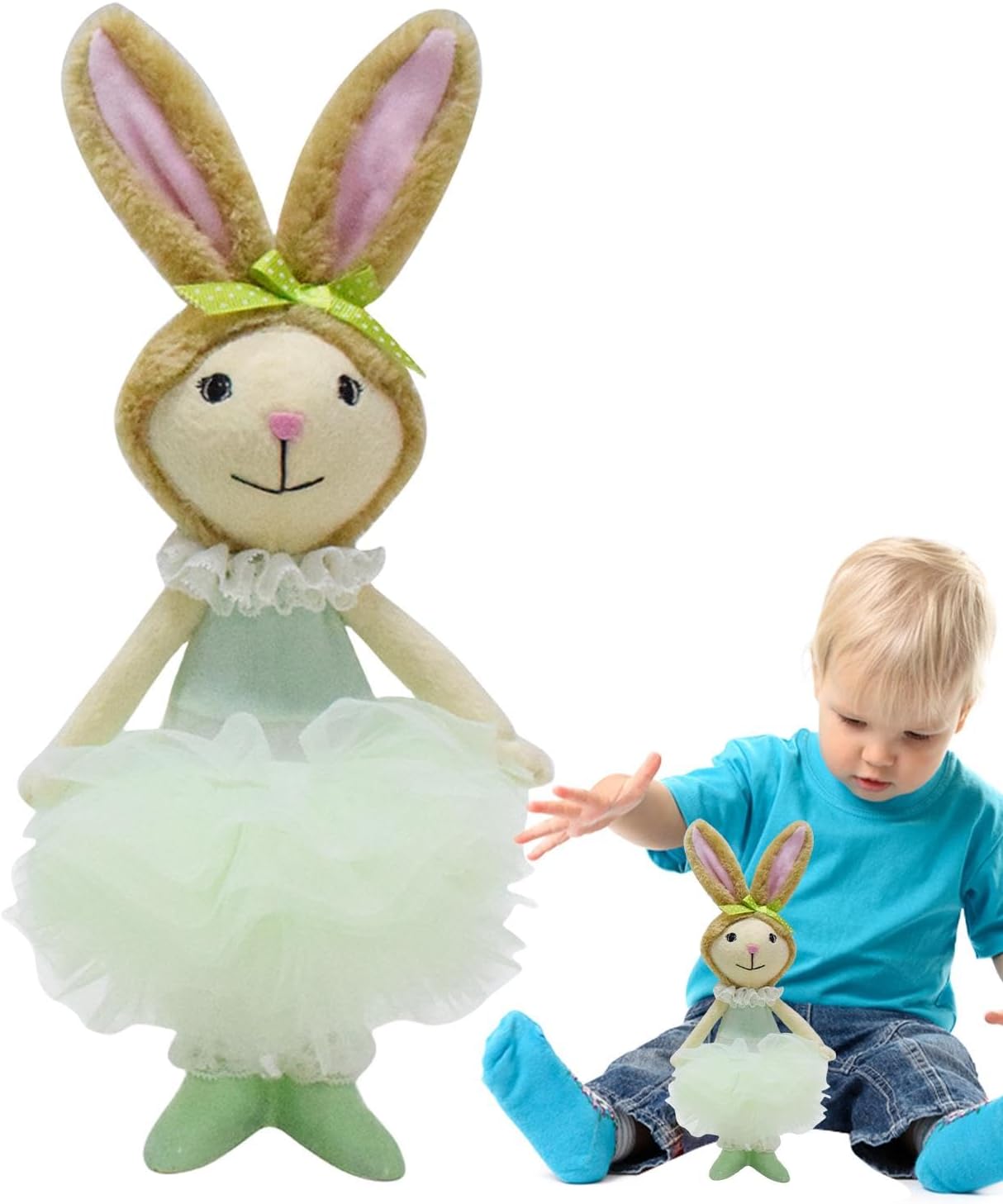 Design confortevole: vestito con un abito appositamente progettato, questo coniglietto di peluche pasquale indossa un adorabile grembiule, aggiungendo un tocco di fascino e personalità che sicuramente scioglierà i cuori durante le festività. Comfort sicuro e: il nostro peluche coniglio pasquale è realizzato in un ottimo materiale di peluche ed è sottoposto a severi test di qualità per la sicurezza e la durata. Il suo tocco morbido e accogliente è perfetto per le pelli sensibili e la sua costruzione ecologica consente un uso a lungo termine con fiducia. Applicazione: entra nella Pasqua con questo adorabile peluche di coniglio che funge anche da decorazione primaverile ideale. I suoi ornamenti e i colori vivaci lo rendono un'aggiunta versatile a qualsiasi casa, aggiungendo un divertimento a salotti, camere da letto, scaffali o uffici. Consegna di buone notizie: possiedi la Pasqua con il nostro adorabile coniglietto pasquale. Questo compagno dolce e coccolone porta divertimento e crea più ricordi. Condividi la tua cura e trasmetti i tuoi auguri con questo regalo perfetto Regalo imperdibile: aggiungi un tocco speciale alle tue celebrazioni preferite con questo peluche coniglietto pasquale. La sua consistenza accogliente e la sua affascinante espressione lo rendono un regalo perfetto per compleanni, Pasqua e occasioni importanti.