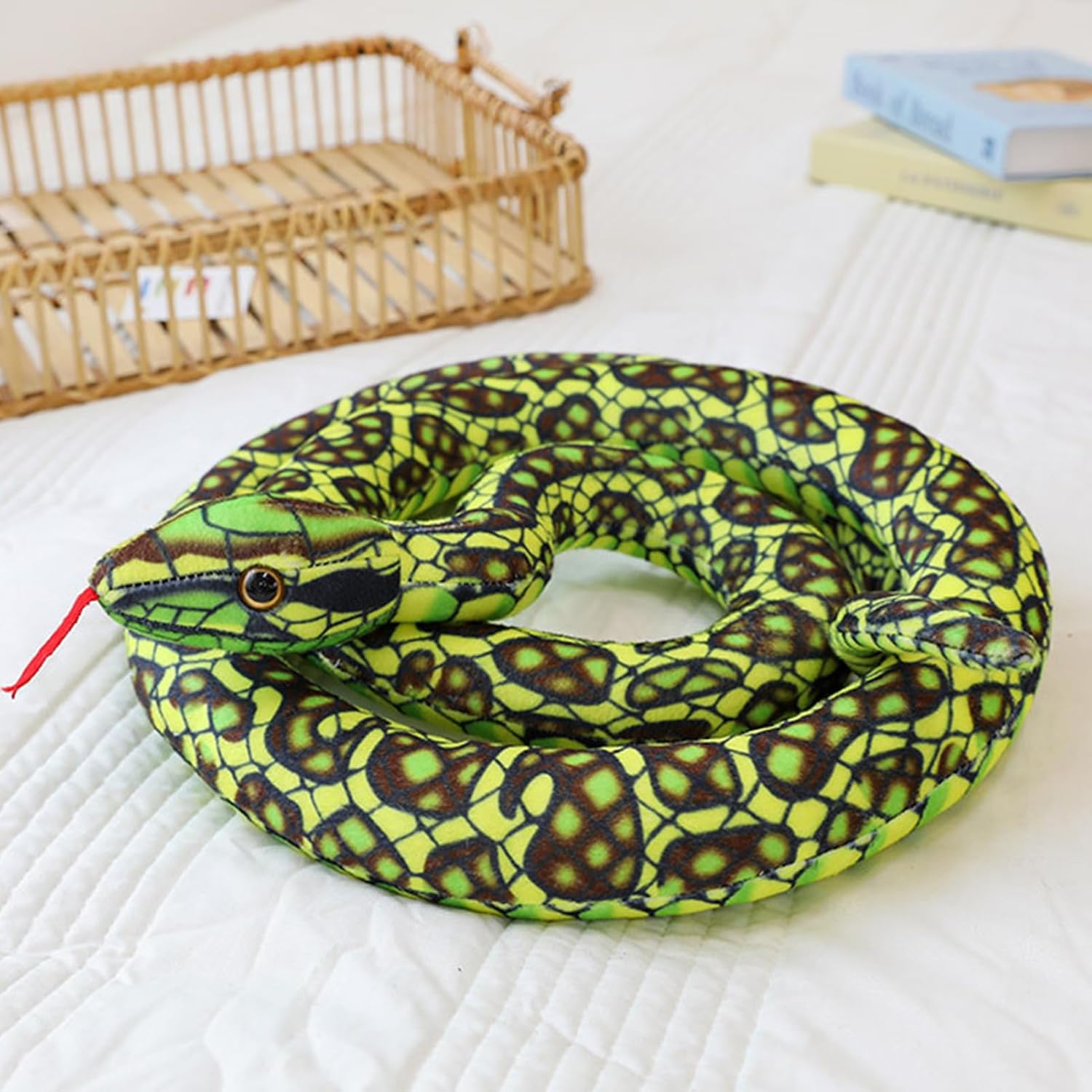 Ispirazione distintiva: la morfologia creativa di questo peluche serpente lo rende un oggetto di curiosità visiva accattivante, particolarmente apprezzata dai collezionisti e dagli appassionati che cercano disegni memorabili per animare il loro universo personale con originalità Dettagli morbidi: peluche a serpente in tessuto ultra morbido e ipoallergenico, mantiene la sua forma dopo ore di coccole grazie a materiali resistenti, offrendo un comfort duraturo e una qualità ottimale per il benessere. Decorazione adattabile: perfetta per l'ufficio, la camera da letto, la camera dei bambini e il soggiorno, questo peluche serpente si adatta agli spazi. Dona comfort e stile al tuo arredamento di casa, un'aggiunta versatile per abbellire la tua casa. Creatività Pratica: questo piumino serpente funge da giocattolo interattivo per la veglia, accessorio di sorpresa per scherzi innocui o cuscino aggiuntivo per il comfort, fondendo abilmente utilità multifunzionale ed estetica attraente in ogni dettaglio di design Porta il: progettato per deliziare gli amanti del design giocoso, questo serpente in peluche è un regalo ideale per compleanni, feste in famiglia e feste come la Giornata dell'Infanza. Crea ricordi allegri condivisi tra generazioni.