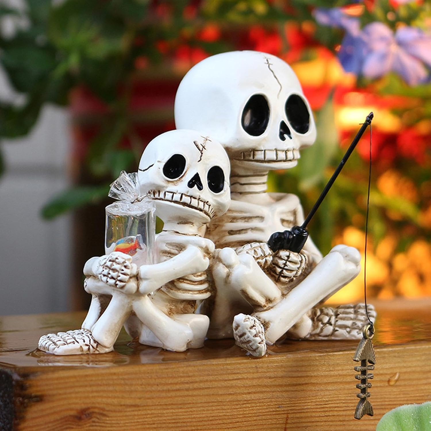Materiale: statuette in resina appositamente formulate per mantenere forma e colore nonostante l'esposizione agli elementi, garantendo un uso prolungato senza alterazioni visibili. Dettagli artistici: una scultura fine garantisce un'eccellente qualità dei dettagli. Queste statuette di scheletro, piene di senso artistico, offrono una struttura chiara ed espressioni vivaci per una presentazione accattivante nella decorazione. Fascino universale: perfetta per decorare camino, giardino, davanzale o balcone, questa statuetta scheletro migliora qualsiasi spazio del suo fascino speciale e del suo fascino artistico. Dona un tocco di eleganza discreto indipendentemente dalla sua posizione nella tua casa o giardino. Decorazione intrigante: Figura scheletro a tema pesca, grande valore decorativo e arte creativa. Dona interesse e romanticismo alla tua casa o collezione. Souvenir senza tempo: queste figure scheletrici sono un regalo ideale per eventi speciali. Regalali a familiari o amici durante le feste per commemorare insieme momenti preziosi con un presente.