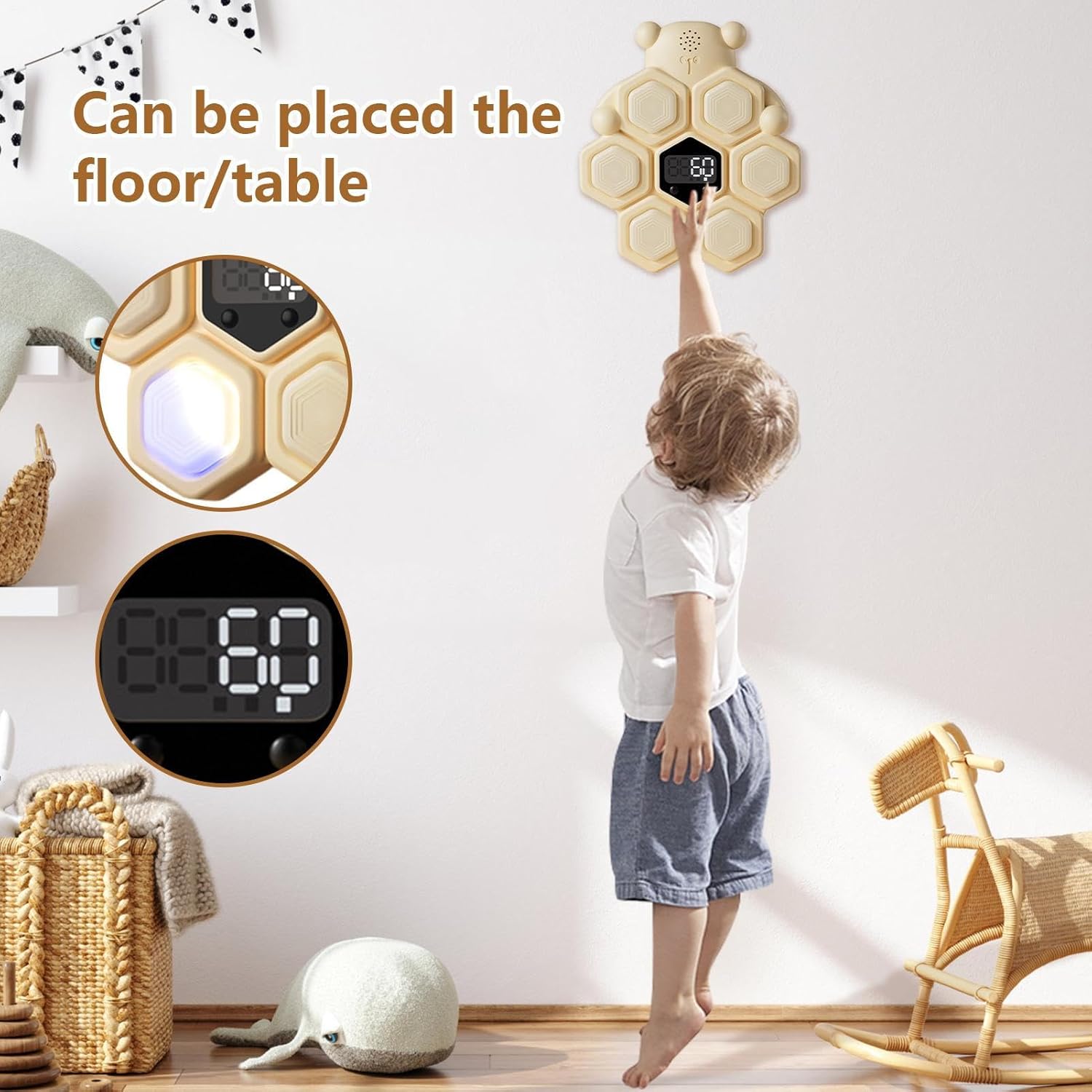 Display LED interattivo per real-time feedback: presenta un display luminoso che mostra istantaneamente salto e conto aiuta i bambini e i teens stay motivated and track their progress during workouts and playtime Engaging Touch Jump Training Experience: This fun high jump toy responds to vertical movement encouraging physical activity and healthy competition among kids teens and even adults in a home or school environment Strumento di esercizio versatile per interni Fitness: progettato per uso interno questo giocattolo di fitness interattivo è ideale per palestra class home workouts o routine quotidiane keeping young users active without needing much space Sicurezza e costruzione durevole per bambini: realizzato da materiali di alta qualità con una base stabile e un sensore tattile per withstand repeated use making it a safe choice for active children and Energy teens Motivates Movement Through Play-Based Fitness: Combines fun and exercise by challenging users to jump higher and beat their best punes promotion coordination muscle development and cardiovascular health