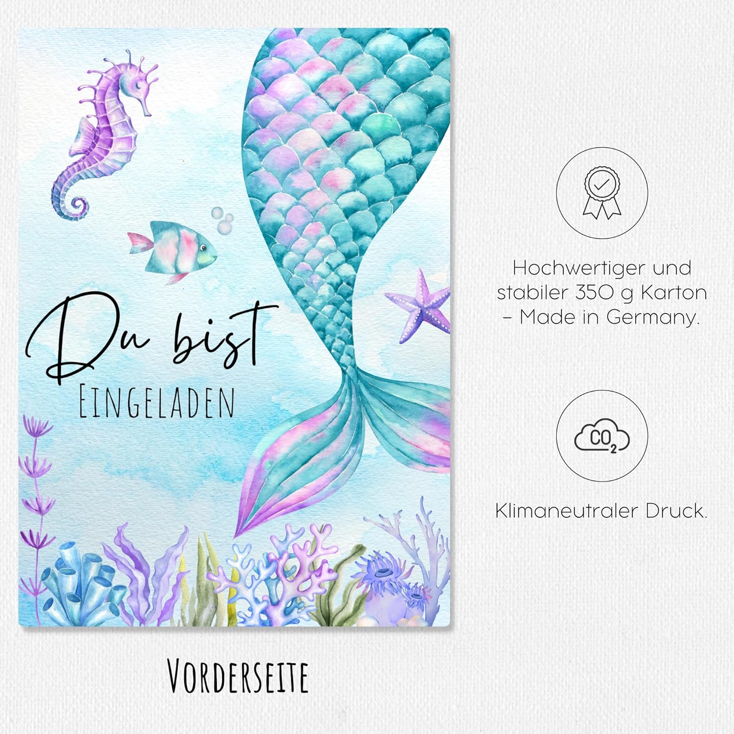 COMPILAZIONE VELOCE E INTUITIVA attraverso campi prefabbricati per tutte le informazioni pertinenti. Un campo aggiuntivo offre anche spazio per importanti informazioni aggiuntive come auguri o simili. Gli occhi dei bambini brillanti: i biglietti d'invito con angoli arrotondati e motivo a sirena sono una vera attrazione, con cui farai al tuo bambino una grande gioia Stampa a clima di alta qualità: i biglietti sono realizzati in Germania e sono realizzati in cartone extra forte da 350 g. Le parti posteriori sono opache e meglio scrivibili con una penna a sfera. Il formato perfetto: gli inviti in formato DIN A6 (14,8 x 10,5 cm) offrono spazio per tutte le informazioni importanti. Versatile: ovviamente, oltre ai compleanni dei bambini, i biglietti possono essere utilizzati anche per altre occasioni, come ad esempio battesimi, baby shower, feste per bambini, inizio della scuola, ecc.