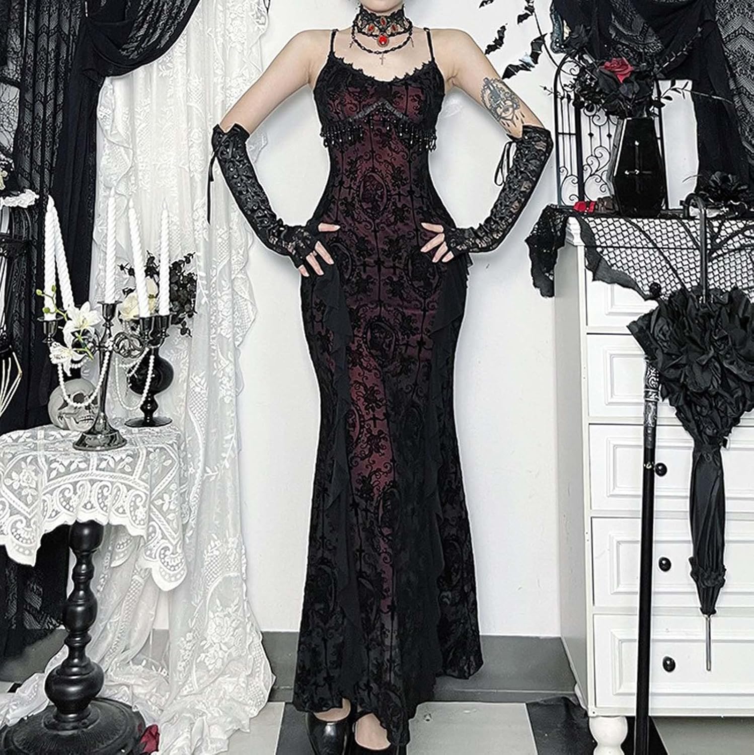 Questo abito da sera è un capolavoro di romanticismo scuro. Si fonde l'opulenza dell'era vittoriana con la silhouette seducente di un abito da sirena. Il ricco tessuto in broccato, che è permeato di ornamenti vellutati, cattura la luce in modo misterioso, creando un'aura di lusso e decadenza. Ogni dettaglio è accuratamente progettato, dalle spalline spaghetti con perle all'elegante orlo svasato. Il vestito si adatta al corpo e forma una figura mozzafiato che lascia un'impressione duratura in ogni occasione. Un abito da sogno per la regina della notte, per occasioni che richiedono un aspetto indimenticabile. Colore: nero/rosso. Contenuto della confezione: 1 vestito da donna