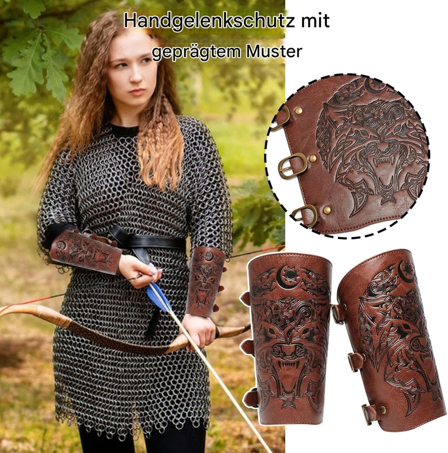 Migliora il tuo look medievale con i nostri squisiti braccialetti in rilievo. Offrono, confortevole e adatto a polsi di diverse dimensioni e offrono una forte protezione per l'avambraccio per ogni performance o evento. Bracer medievale – Protezione per braccia da cavaliere regolabile per cosplay e costumi. Bracciali rinascimentali - Vintage - guardie in rilievo per larp e giochi di ruolo. Knight Arm Guards – Classici guerrieri per abiti medievali e fantasia. Specifiche: Materiale: poliuretano. Dimensioni del prodotto: circa 24,5 x 19,5 cm. Lunghezza della cinghia: circa 17,5 cm. Peso: 140 g per pezzo. Colore: Nero, Caffè Contenuto della confezione: 2 protezioni per il polso in rilievo. Nota: Il colore dell'articolo potrebbe essere leggermente diverso da quello mostrato nell'immagine a causa delle differenze di illuminazione e dello schermo. Si prega di considerare un margine di errore di 1-2 cm a causa della misurazione manuale.