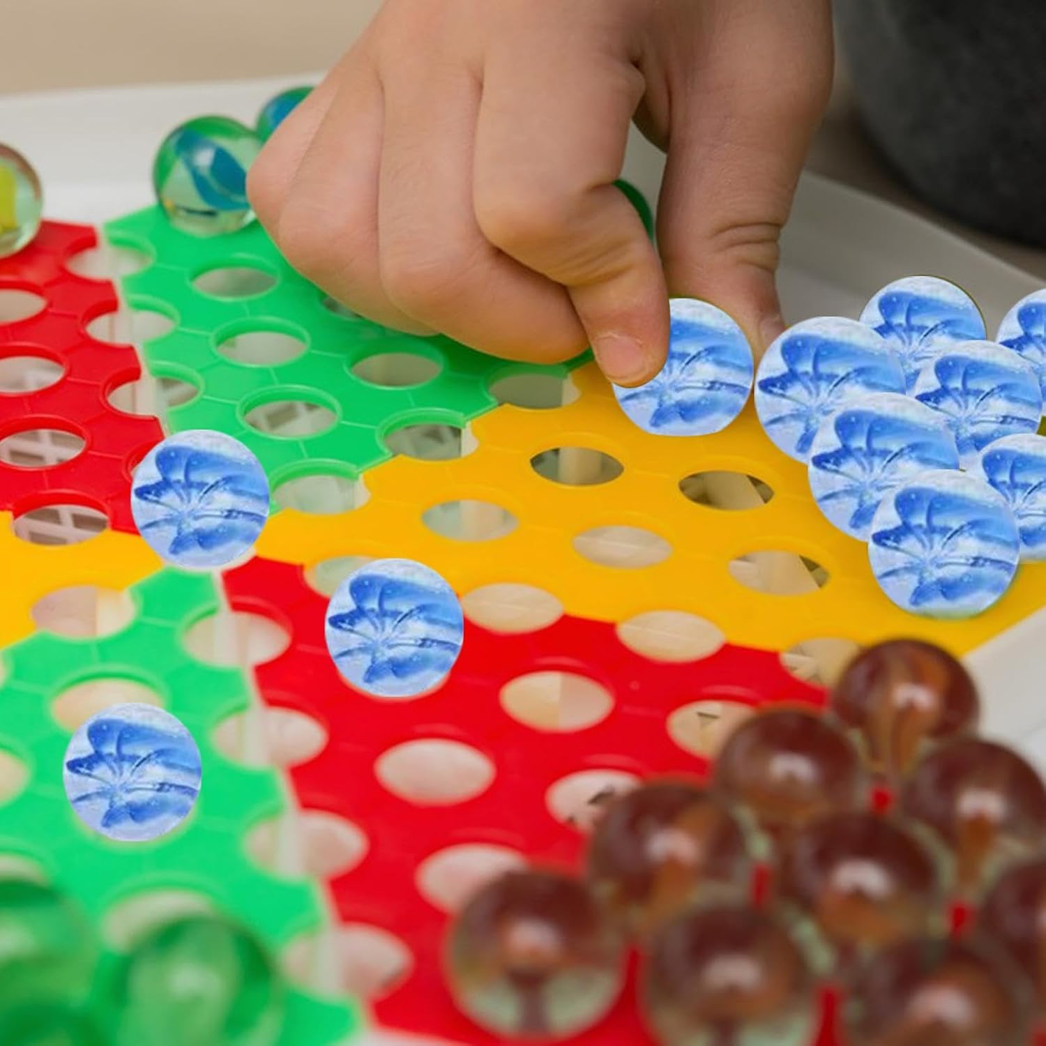 Molto più durevole: il marmo di vetro vibrante e lucido con pigmentazione intensa è la combinazione ideale di eleganza e superiorità. Ogni pietra è sapientemente lucidata per creare una brillantezza brillante, rendendola un'opzione flessibile sia per i giochi che per le decorazioni. Divertimento decorativo: concediti la bellezza dell'infanzia con la biglia di vetro colorata. Perfetto per gli appassionati di scacchi e gli amanti delle gare di biglie. Vivi momenti nostalgici con stile e aggiungi un tocco di glamour come decorazione domestica unica o giocattolo versatile per tutte le età. Artigianato sofisticato: con una lavorazione sofisticata e un design unico, il marmo di vetro colorato è la scelta perfetta per mostrare il tuo gusto sofisticato. Ogni marmo fatto a mano è un'opera d'arte squisita con motivi intricati e colori vivaci, che lo rendono un pezzo da esposizione perfetto. Decorazione ricca: applicabile a giochi, acquari, stanze, giardini e altre scene di varie scene. Queste biglie di vetro colorate aggiungono un tocco di colore brillante alla tua stanza con i loro colori vivaci e la lucentezza unica e fungono da decorazione multifunzionale. Facile da trasportare: goditi più ore di intrattenimento con le biglie di vetro colorate, perfette per il divertimento all'aria aperta. Con il loro design piccolo e raffinato, la facile trasportabilità e il diametro di 16 mm, sono ideali per avventure all'aria aperta e riunioni di famiglia