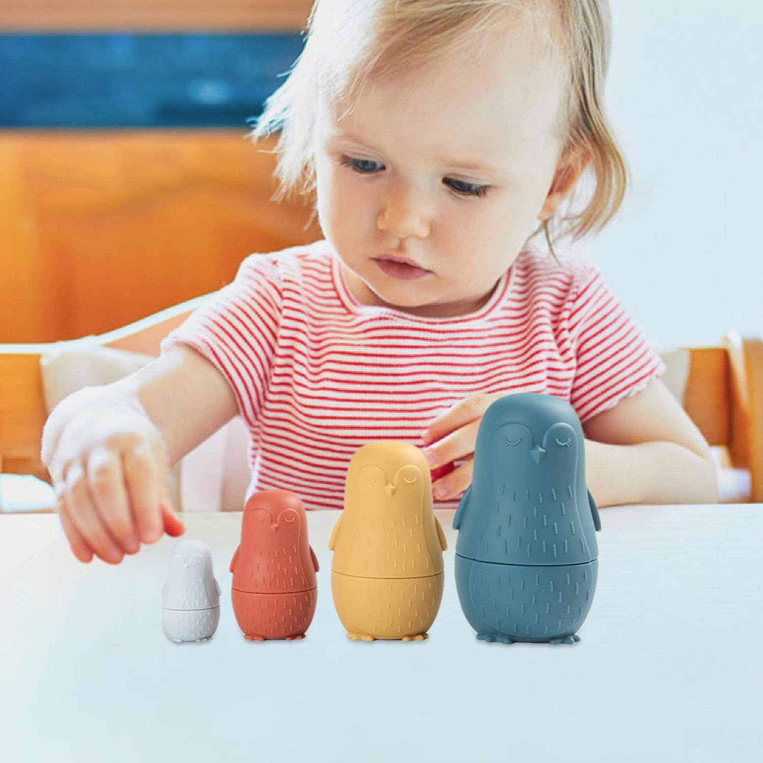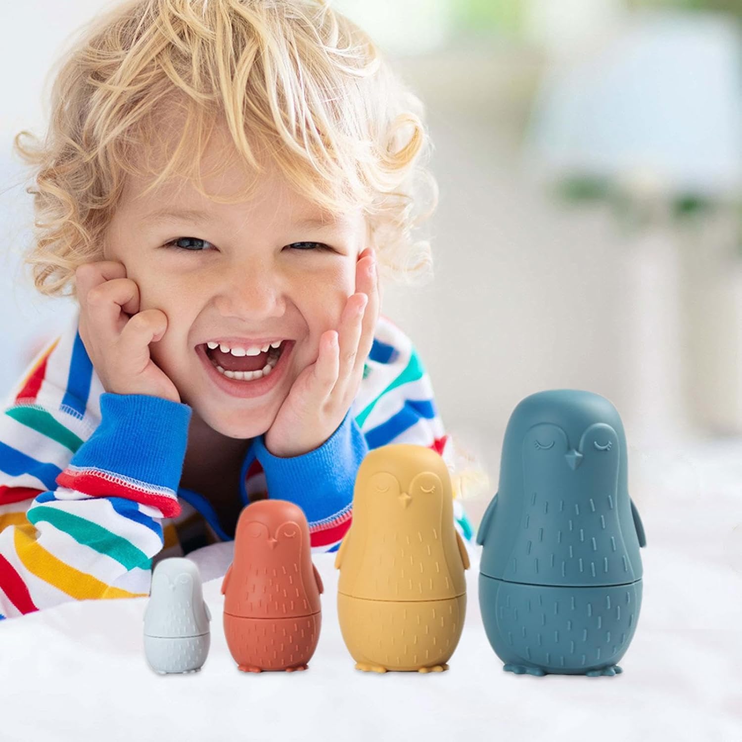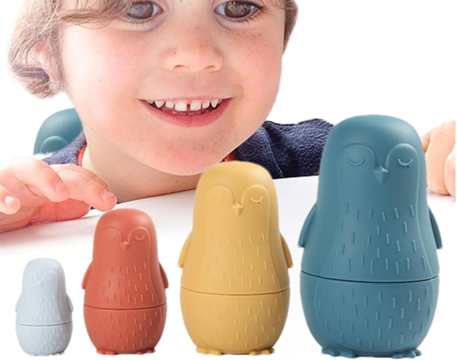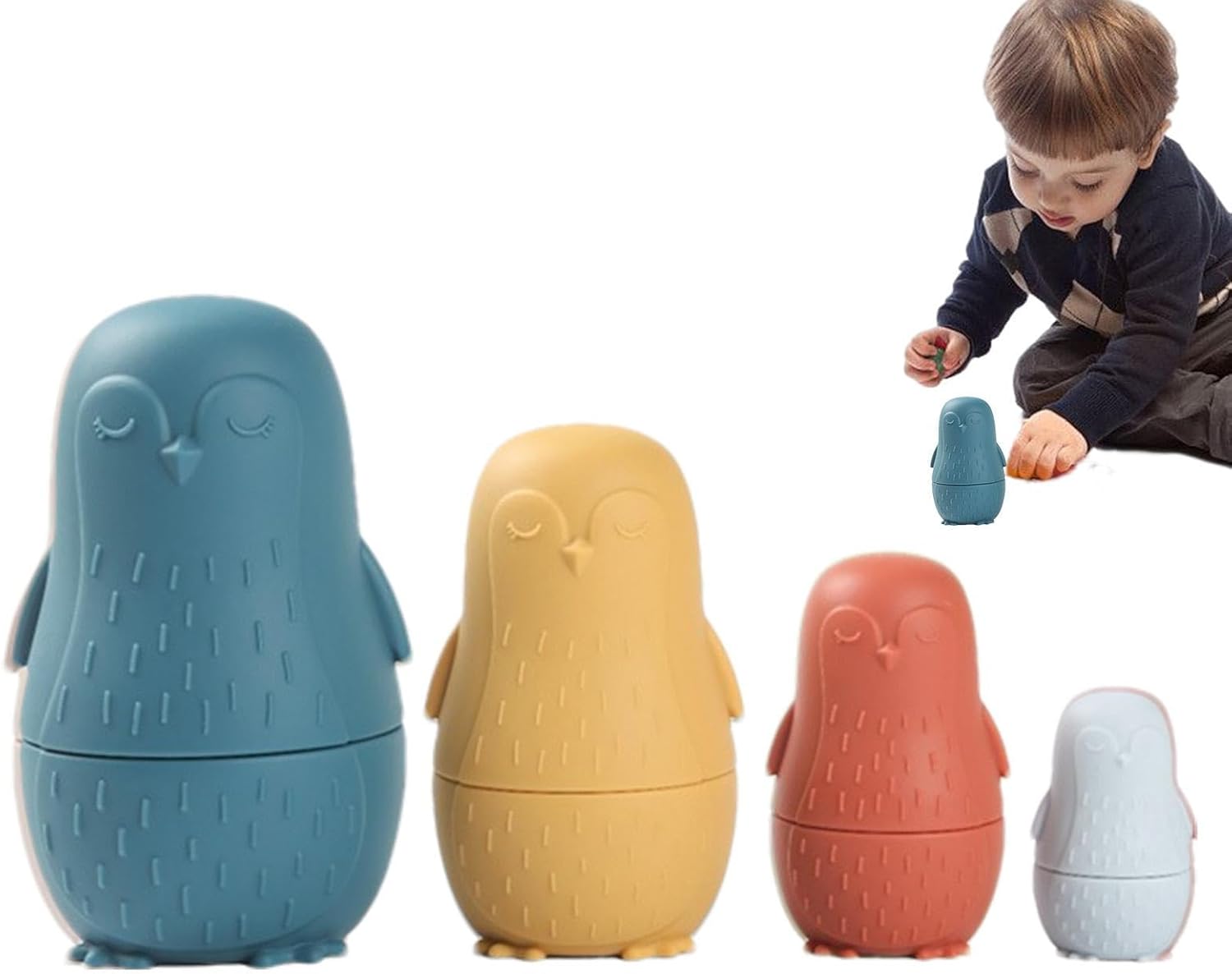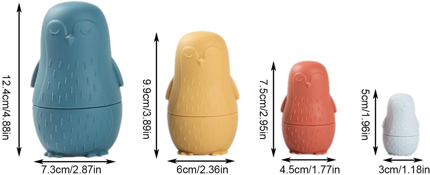 Si adatta perfettamente: a differenza delle bambole in legno che devono essere aperte e chiuse con l'aiuto di un adulto, le nostre bambole impilabili in silicone si adattano perfettamente alla parte superiore e inferiore, i bambini possono aprirle e chiuderle da soli Sviluppa la coordinazione occhio-mano: le bambole nidificanti in silicone possono aiutare i vostri piccoli a sviluppare la coordinazione occhio-mano, rafforzare l'equilibrio e allenare efficacemente la capacità del bambino di esplorare lo spazio Simpatico design a pinguino: le bambole per bambini sono impilabili e assortite a forma di pinguino. La simpatica forma a pinguino può attirare l'attenzione dei bambini e aumentare il divertimento del bagno Sicuro e delicato sulla pelle: per rendere il giocattolo per nidificazione morbido, liscio, inodore, non facile da rompere, sicuro e delicato sulla pelle, utilizziamo materiale in silicone morbido di qualità alimentare Ottima idea regalo: le bambole per nidificazione russe sono ideali come regalo per feste di compleanno per bambini, baby shower, festa dei bambini, Natale e altre feste speciali