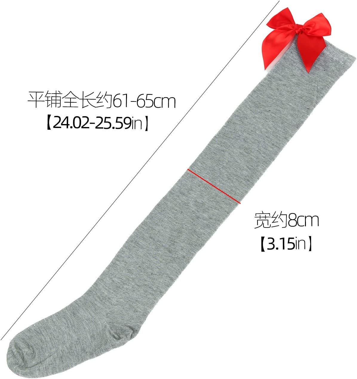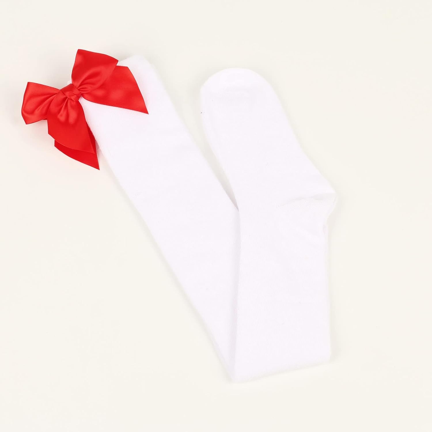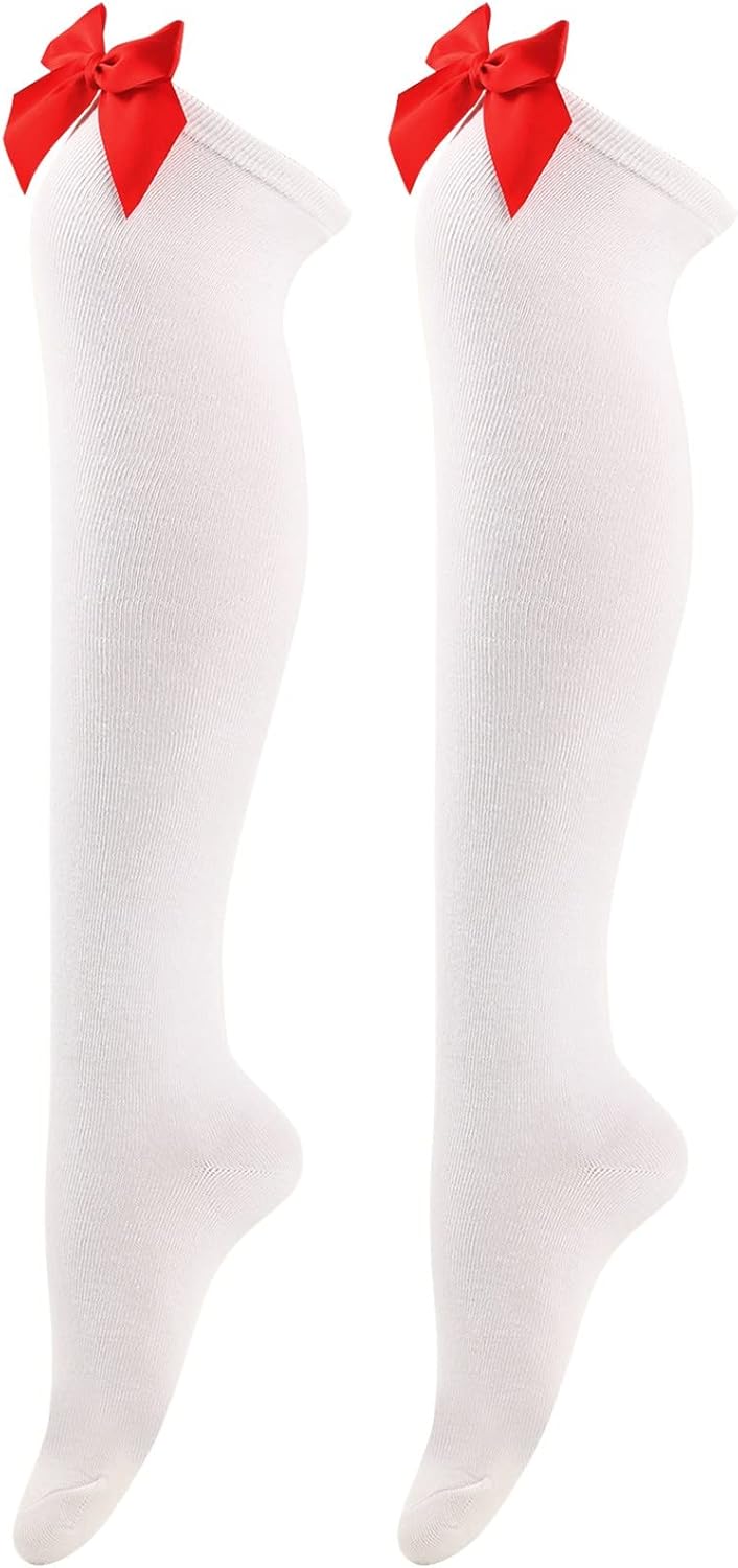 Calze lunghe da donna Bowknot di colore puro, calzini alti al ginocchio, calze da festa di Natale Contenuto della confezione: 1 paio di calze lunghe. Si prega di notare che lievi differenze di colore dovrebbero essere accettabili a causa dello schermo della luce.